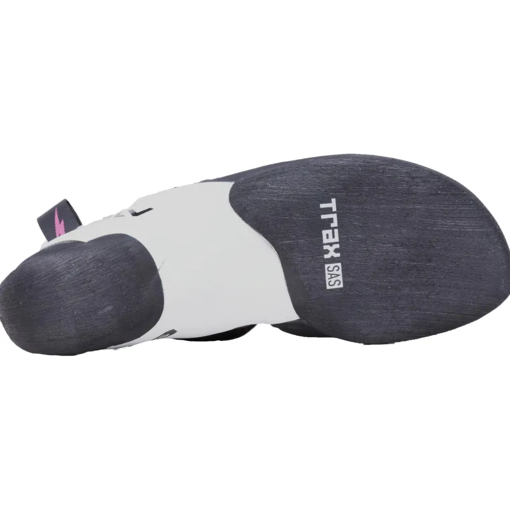 Dank des aggressiven Downturns und der starken Asymmetrie überzeugen die Schuhe durch Präzision auch auf sehr kleinen Tritten und gute Kontrolle im Überhang. Die relativ weiche, zweiteilige Sohlenkonstruktion mit einer 4,2 mm dicken Außensohle und einer sehr flexiblen Zwischensohle sorgt für eine gute Sensibilität. Die leichte Vorspannung erleichtert vor allem das Einhaken mit der Ferse und verbessert so zusätzlich die Überhangqualitäten des Schuhs.