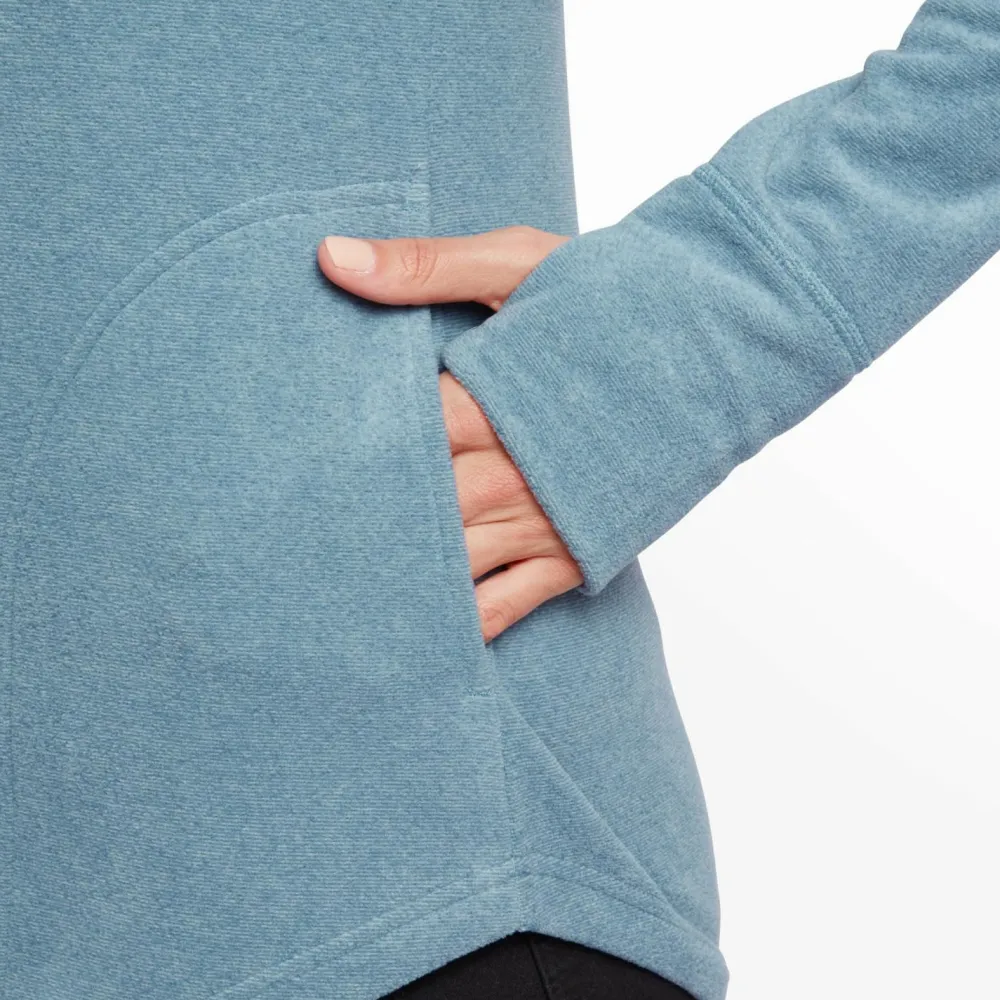 Das weiche Fleecematerial ist angenehm warm und bietet gleichzeitig eine solide Atmungsaktivität. Der Stehkragen lässt sich mit einem Kordelzug individuell anpassen, so dass keine kalte Luft eindringen kann. In den beiden Fronttaschen kannst Du Deine Hände gut aufwärmen.