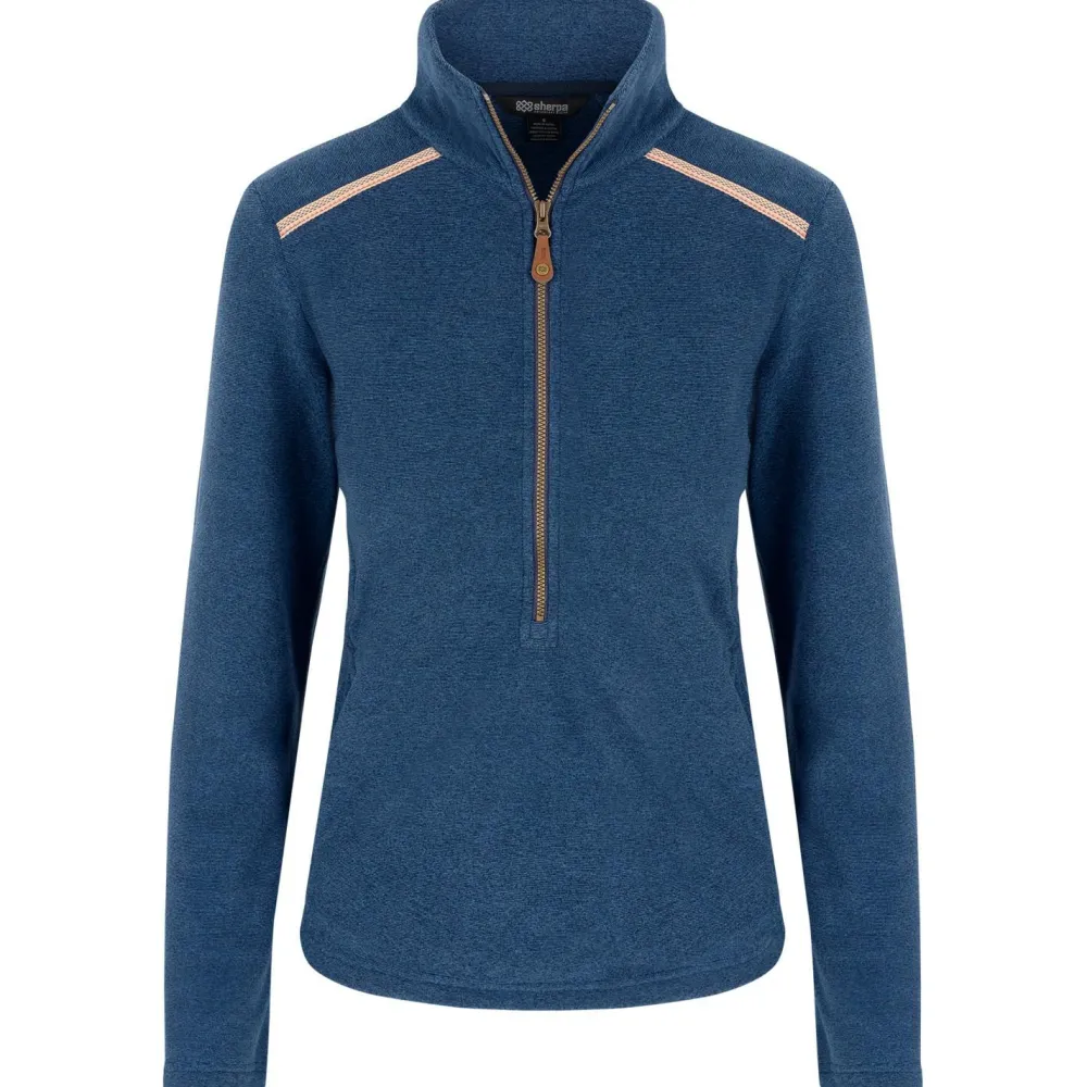 Der Women’s Rolpa Eco Pullover Zip von Sherpa eignet sich für Ausflüge in die Natur und Berge bei niedrigen Temperaturen. Mit dem modernen und sportlichen Design kannst Du ihn vielseitig kombinieren. Der optische Akzent auf den Schultern unterstreicht das moderne Design. Damit sieht er zur Jeans, aber auch zur Freizeithose gut aus.