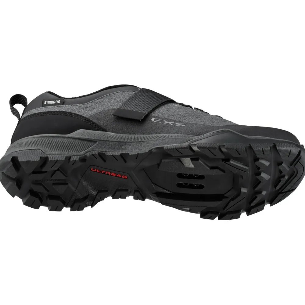 Der EX500 ist eine Art „Chamäleon“ unter den Radschuhen in Shimanos Portfolio. Denn Du kannst den Schuh mit dem SPD-Klickpedalsystem nutzen, um einen runderen Tritt und eine verbesserte Kraftübertragung zu erreichen. Der SPD-Cleat kann dabei -mit etwas Spielraum- im Mittelfußbereich platziert werden, was komfortables Pedalieren ermöglicht. Die kräftig profilierte Sohle bietet Dir sehr gute Traktion beim Gehen, wobei die seitlichen Stollen den Metall-Cleat etwas schützen. Das luftig-leichte, selbstverständlich atmungsaktive Obermaterial sorgt für hohen Tragekomfort und gutes Feuchtigkeitsmanagement.
