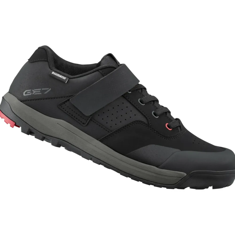 Der GE700 von Shimano ist der perfekte Mountainbikeschuh für Dich, wenn Enduro Deine Disziplin ist, und Du epische Ausfahrten und Adrenalin-lastige, ruppige Abfahrten liebst! Der SPD-Cleat ist im Mittelfußbereich positioniert, was für gute Stabilität sorgt.Die Gummimischung und das Profil der Sohle sind für besten Grip auf dem Bike und im Gelände beim Gehen optimiert, sodass Du beim Gravity-Biken bedenkenlos Gas geben kannst, ohne jemals die Kontrolle zu verlieren. Das robuste, atmungsaktive Obermaterial macht den Enduro-Spaß ohne zu murren mit, und die Schnürung sorgt, zusammen mit dem breiten Klettriemen für eine gute Passform und ordentlichen Tragekomfort.