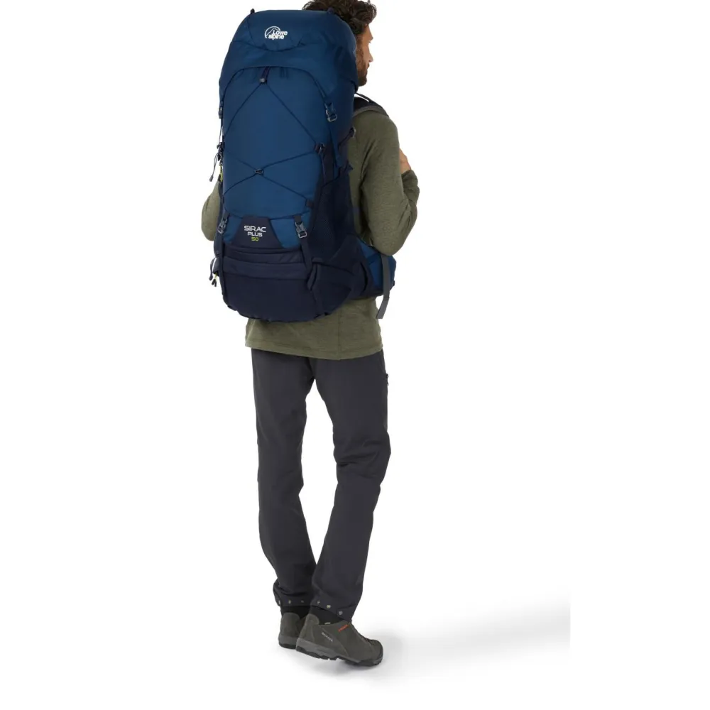 Der Sirac Plus 50 Trekkingrucksack ist in zwei unterschiedlichen Rückenlängen erhältlich. Beide Ausführungen bieten mit 50 Liter Volumen eine Menge Stauraum für Bekleidung, Proviant und Ausrüstung. Für ein komfortables Tragegefühl sorgen dabei die gepolsterten Schulterträger und die Kombination aus breitem Hüftgurt und Brustgurt.