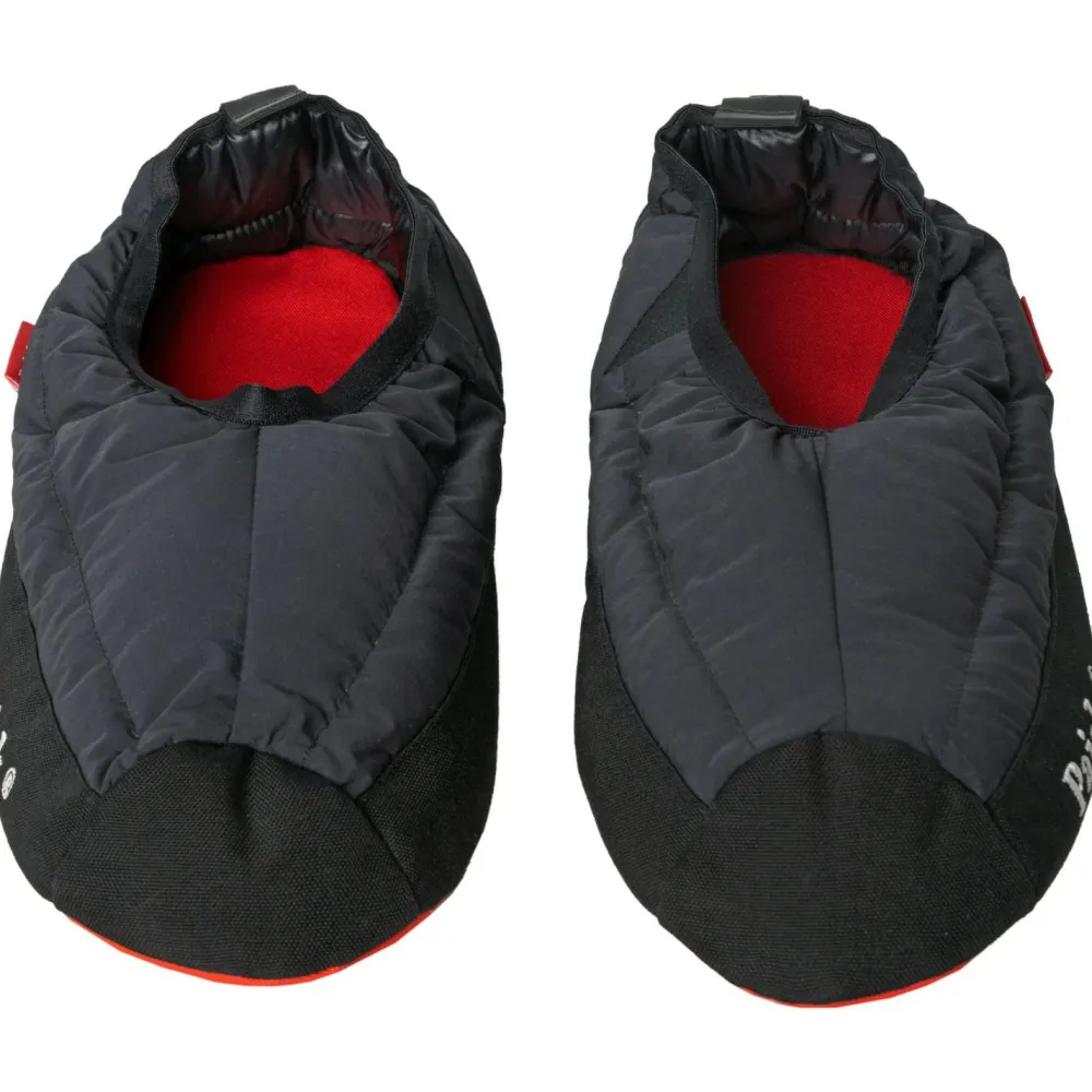 Perfekt für Zuhause, auf der Hütte oder auch beim Campen, wenn es abends etwas kühler wird: die Sky Daunenschuhe von Pajak! Durch die griffige Vibram Laufsohle hast Du einen sicheren Stand unterwegs im Haus und die Anziehschlaufen verhelfen Dir einfach in die Slipper. Die EVA Zwischensohle isoliert Richtung Boden hin ab und durch das kompakte Format lassen sich die Hüttenschuhe klein verstauen und überall hin mitnehmen!