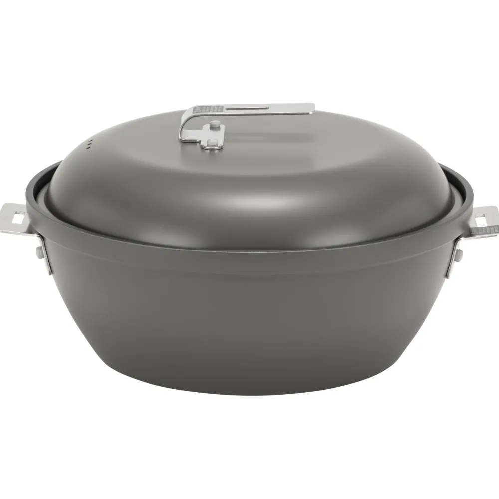 Ob Braten, Backen oder Schmoren – das Field Cooker Pro von Snow Peak ist der ideale Allrounder für die Campingküche! Das dreiteilige Kochset aus Aluminium besteht aus einem großen Topf, einem Reiskochtopf und einer Bratpfanne, die dank dem modularen Design auch als Topfdeckel verwendet werden kann. Der Topf und die Pfanne sind mit einer Antihaftbeschichtung versehen und die einklappbaren Griffe aus langlebigem Edelstahl machen das Verstauen zum Kinderspiel.