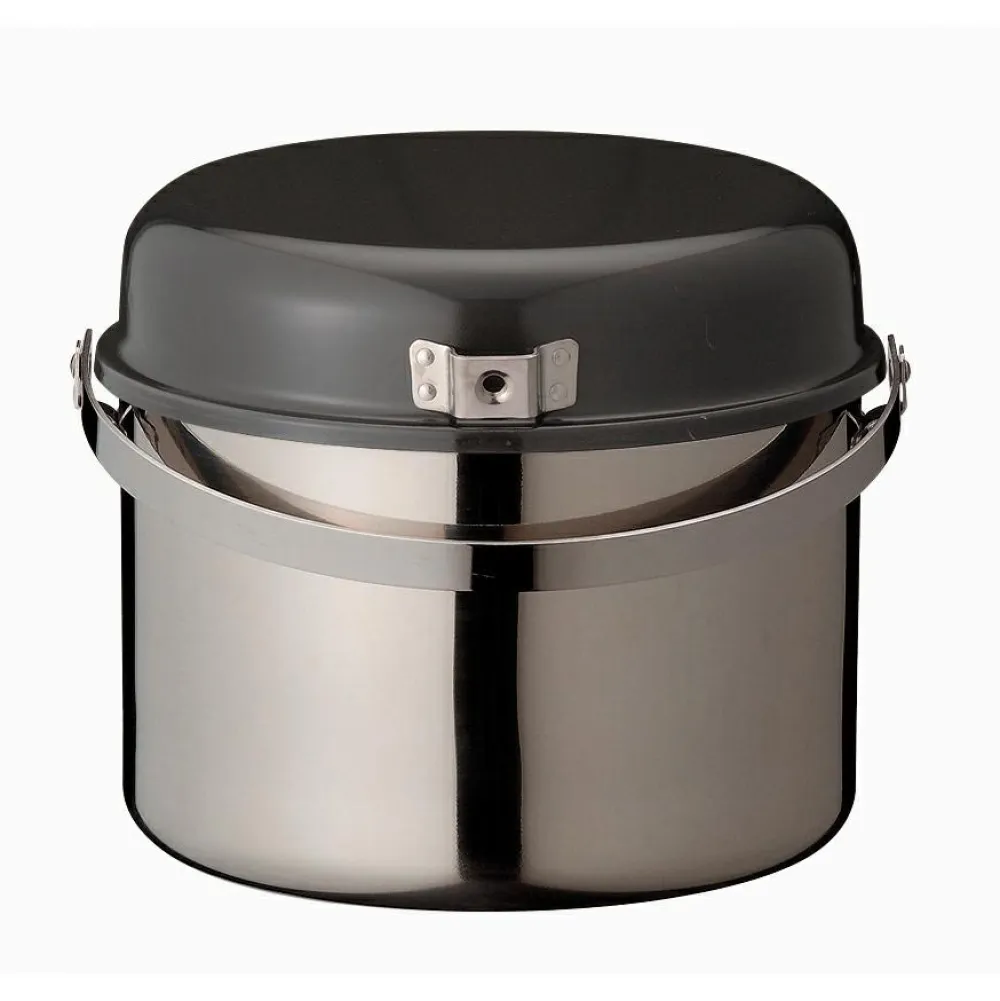 - 3 Edelstahltöpfe (3/4,3/6,6 L); 1 Eisenpfanne; 1 Edelstahlsieb; abnehmbarer Holzgriff mit Packsack
