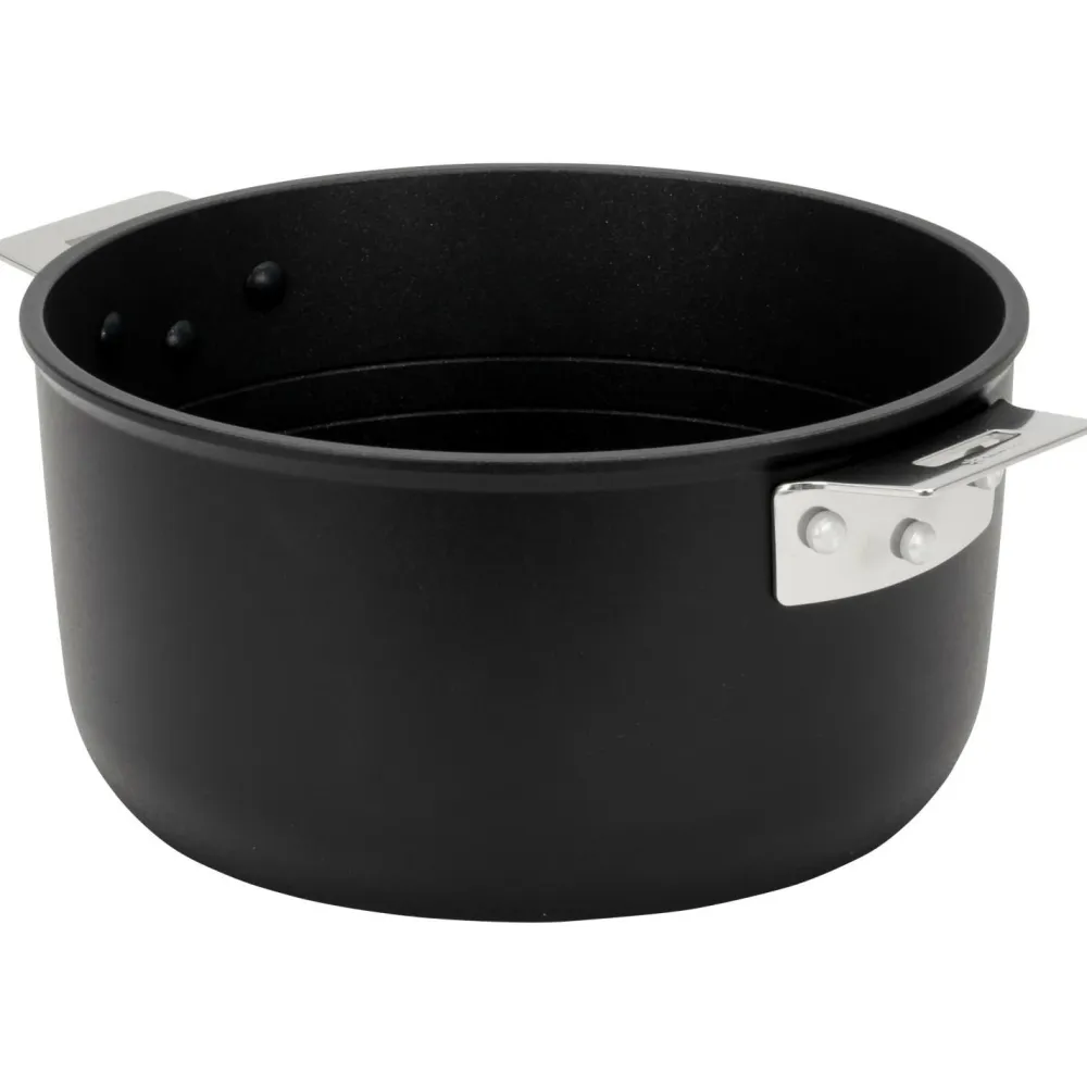 - Topf (2,5 L); Bratpfanne (0,9 L); Glasdeckel; abnehmbarer Griff