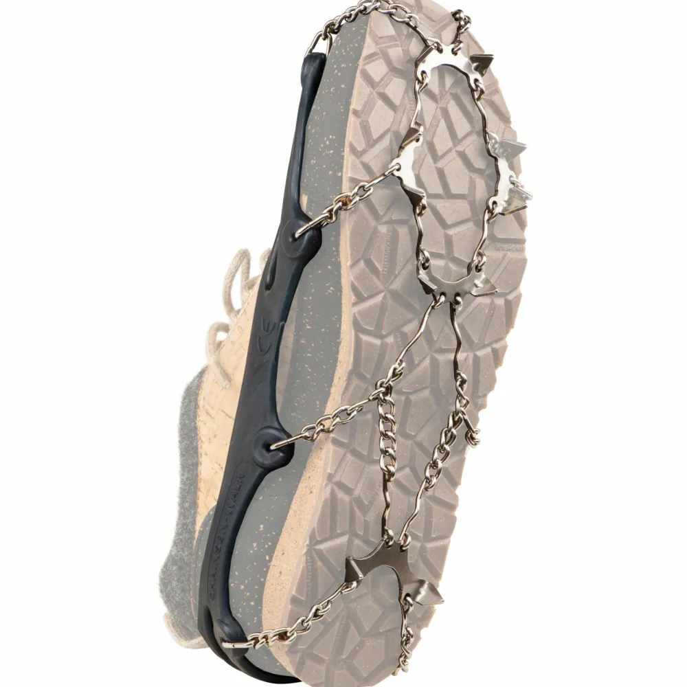 Aus Edelstahl gefertigt und somit vor Korrosion geschützt, werden sie zu langlebigen Begleitern. Die Halterung besteht aus kältebeständigem Elastomer und wird einfach über den Schuh gezogen. Dank mehrerer Kontaktpunkte wird ein optimaler Halt und eine gleichmäßige Verteilung der Belastung erzeugt. Eine kleine Packtasche wird mitgeliefert.