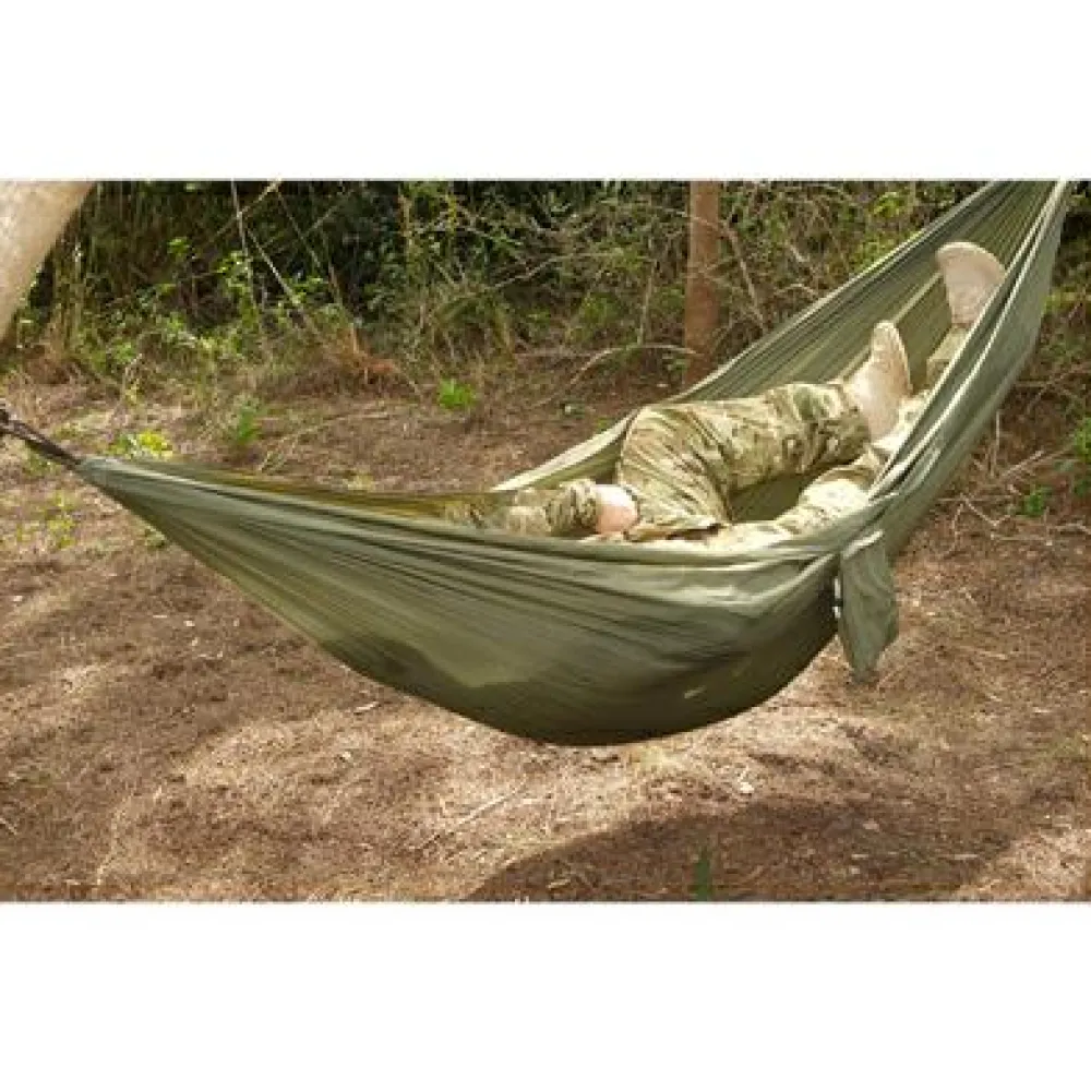 Die Hängematte Tropical von Snugpak ist auf schnelles und unkompliziertes Aufhängen ausgelegt. Dank des mitgelieferten Aufhängesystems mit Seilen und Stahlkarabinern hast Du alles dabei, um die Hängematte direkt zwischen Bäumen oder stabilen Fixpunkten zu befestigen. Das spart Zeit und Nerven, egal ob Du kurz Pause machst oder abends einen festen Schlafplatz einrichtest. Mit einer maximalen Belastbarkeit von rund 180 kg eignet sie sich auch für größere oder kräftigere Personen und vermittelt dabei ein sicheres Liegegefühl.