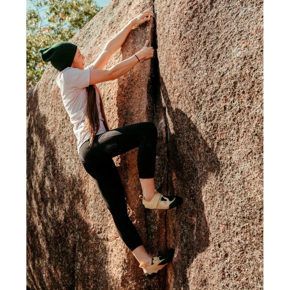 Mit einem fokussierten, aber komfortablen Sitz ist der Stay LV darauf ausgelegt, am Fels und an der Wand Unterstützung zu bieten. Die leicht asymmetrische Form unterstützt dabei die natürliche Krümmung des Fußes und bietet gleichzeitig genug Platz im Zehenbereich. Mit der weichen Sohle lässt sich der Untergrund sensibel wahrnehmen und erhöht dementsprechend das Trittgefühl. Der Verschluss erfolgt über einen praktischen und schnellen Klettverschluss, der einen zuverlässigen Sitz und eine einfache Einstellung ermöglicht.
