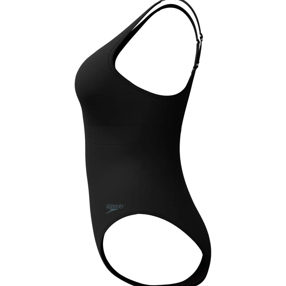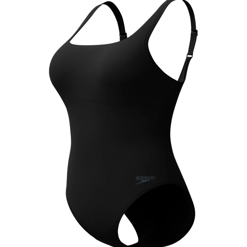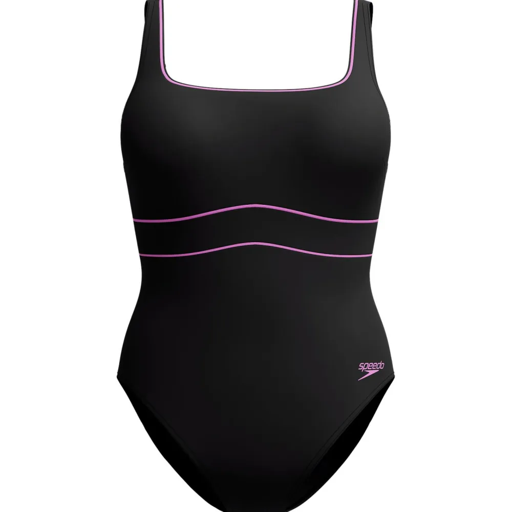 Mit dem Women’s Shaping Contour Eclipse Swimsuit von Speedo wirst Du im Schwimmbad eine ausgezeichnete Figur machen. Der Karee-Ausschnitt macht ein schönes Dekolletee. Gleichzeitig schmeichelt der große, U-förmige Rückenausschnitt Deinem Rücken. Der Badeanzug gibt Dir mit dem Unterbrustband und dem durchgehenden Shaping guten Halt und formt Deine Figur.Für den optimalen Sitz kannst Du die Träger stufenlos verstellen.