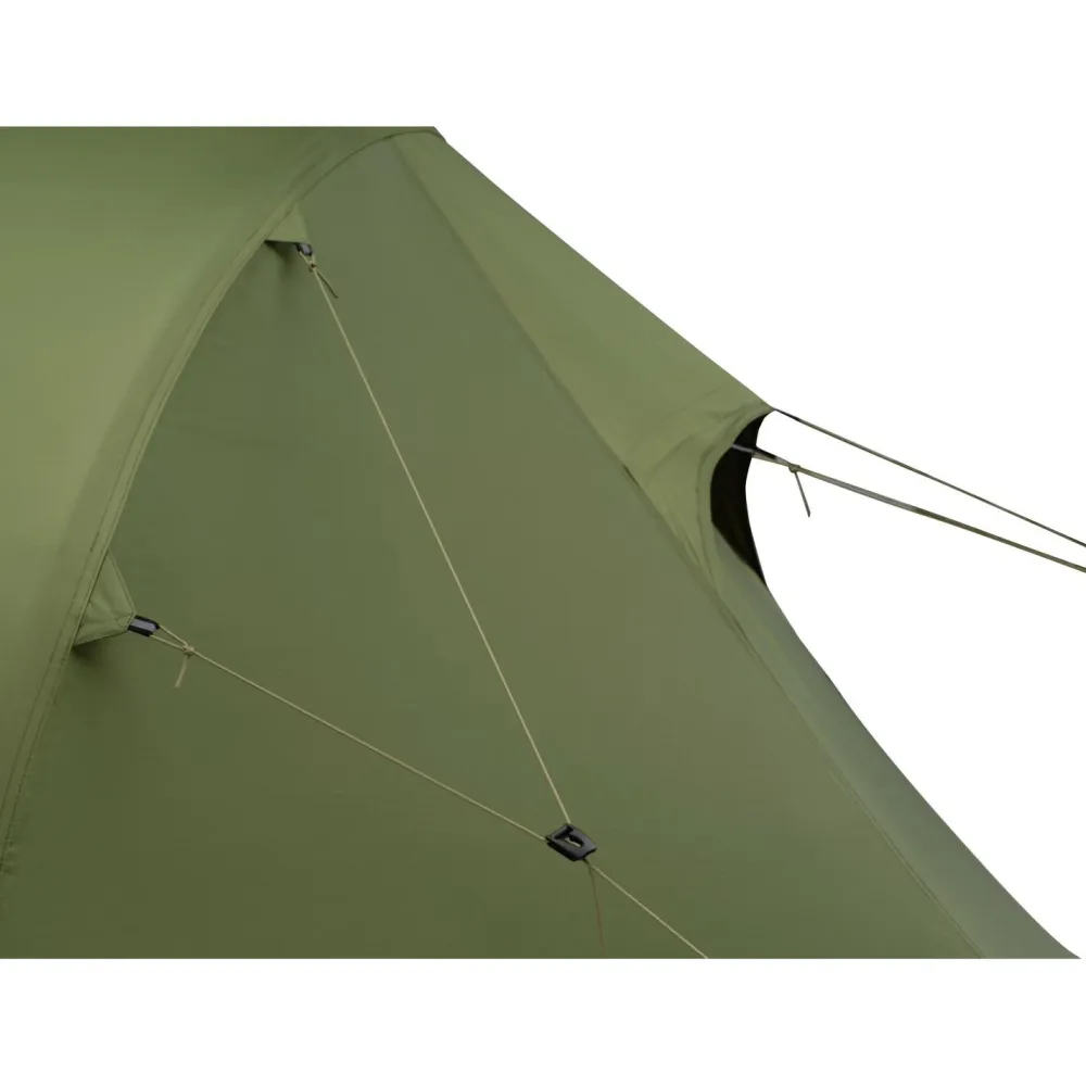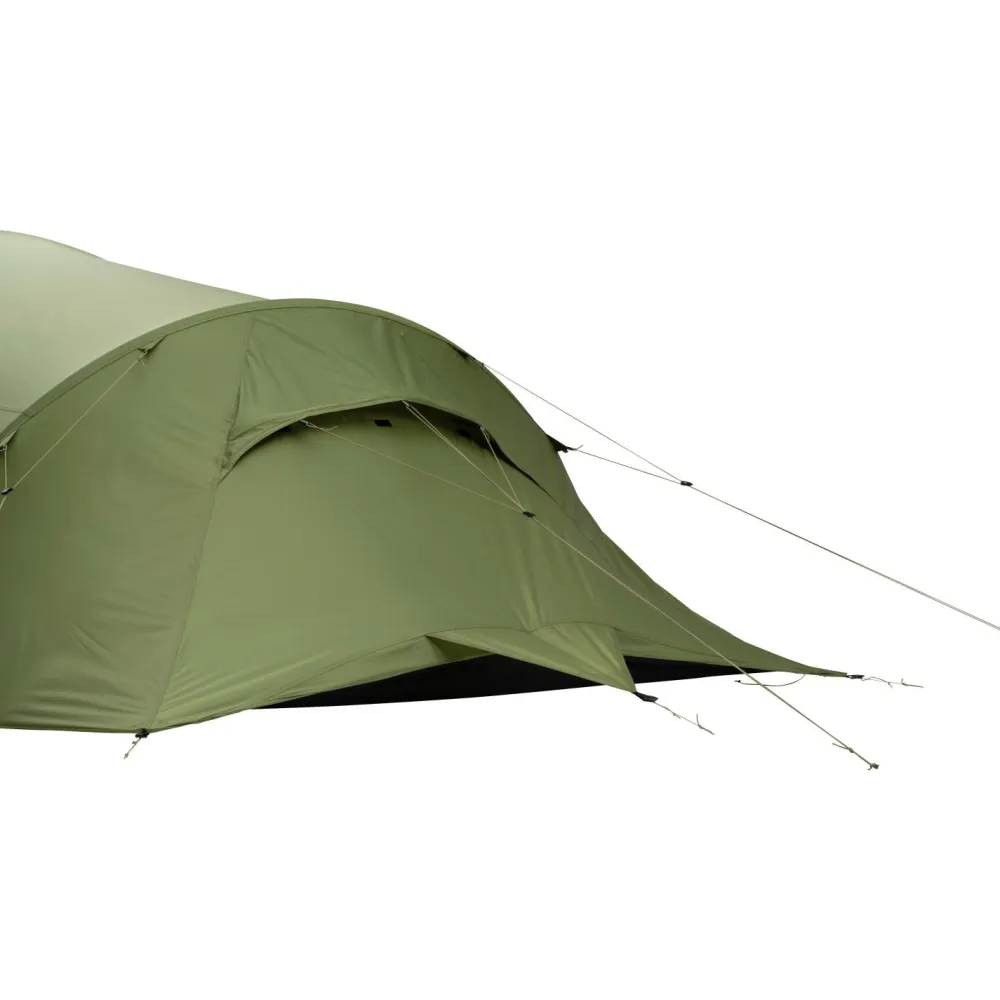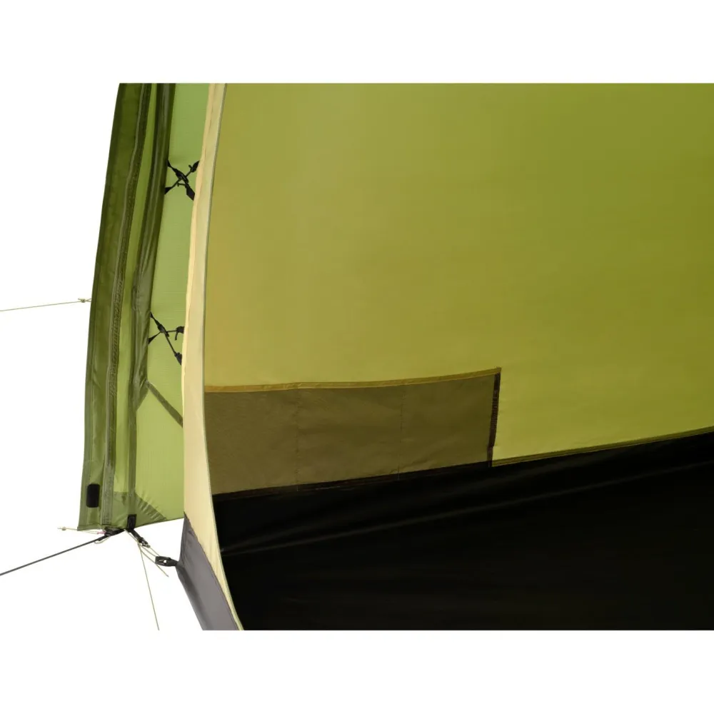 Praktische Details wie Netztaschen, Belüftungsöffnungen und Fixierungen für den Eingang, welche es erlauben, ihn hochzurollen, sorgen für mehr Ordnung und Komfort. Das Außenzelt hat eine Wassersäule von 3000 Millimetern, der Boden sogar 5000 mm. Beide sind PU-beschichtet und haben eine Reißfestigkeit von 8 Kilogramm. Somit ist für einen umfangreichen Wetterschutz gesorgt