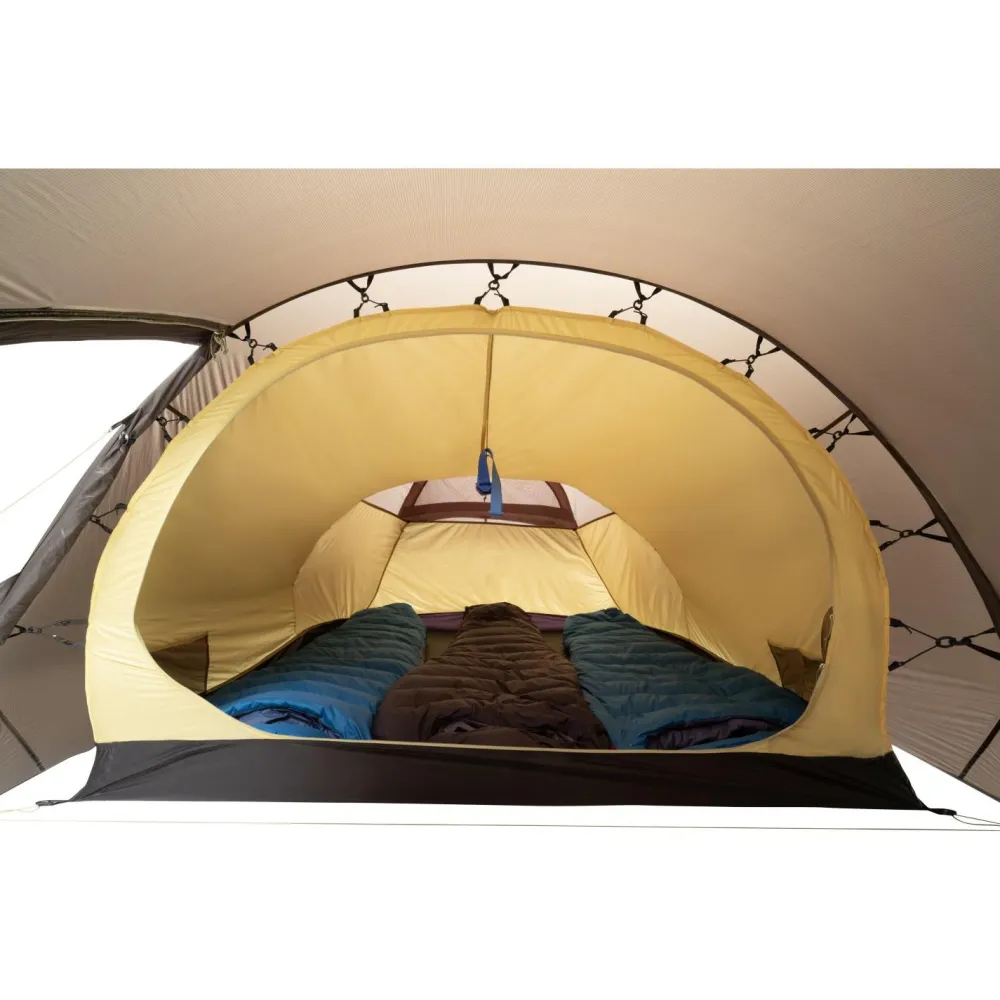 Praktische Details wie Netztaschen, Belüftungsöffnungen und Fixierungen für den Eingang, welche es erlauben, ihn hochzurollen, sorgen für mehr Ordnung und Komfort. Das Außenzelt hat eine Wassersäule von 3000 Millimetern, der Boden sogar 5000 mm. Das Außenzelt ist außen mit einer Silikonbeschichtung und innen mit einer PU-Beschichtung behandelt. Der Boden ist mit PU-beschichtet. Beide haben eine Reißfestigkeit von 9 Kilogramm. Somit ist für einen umfangreichen Wetterschutz gesorgt