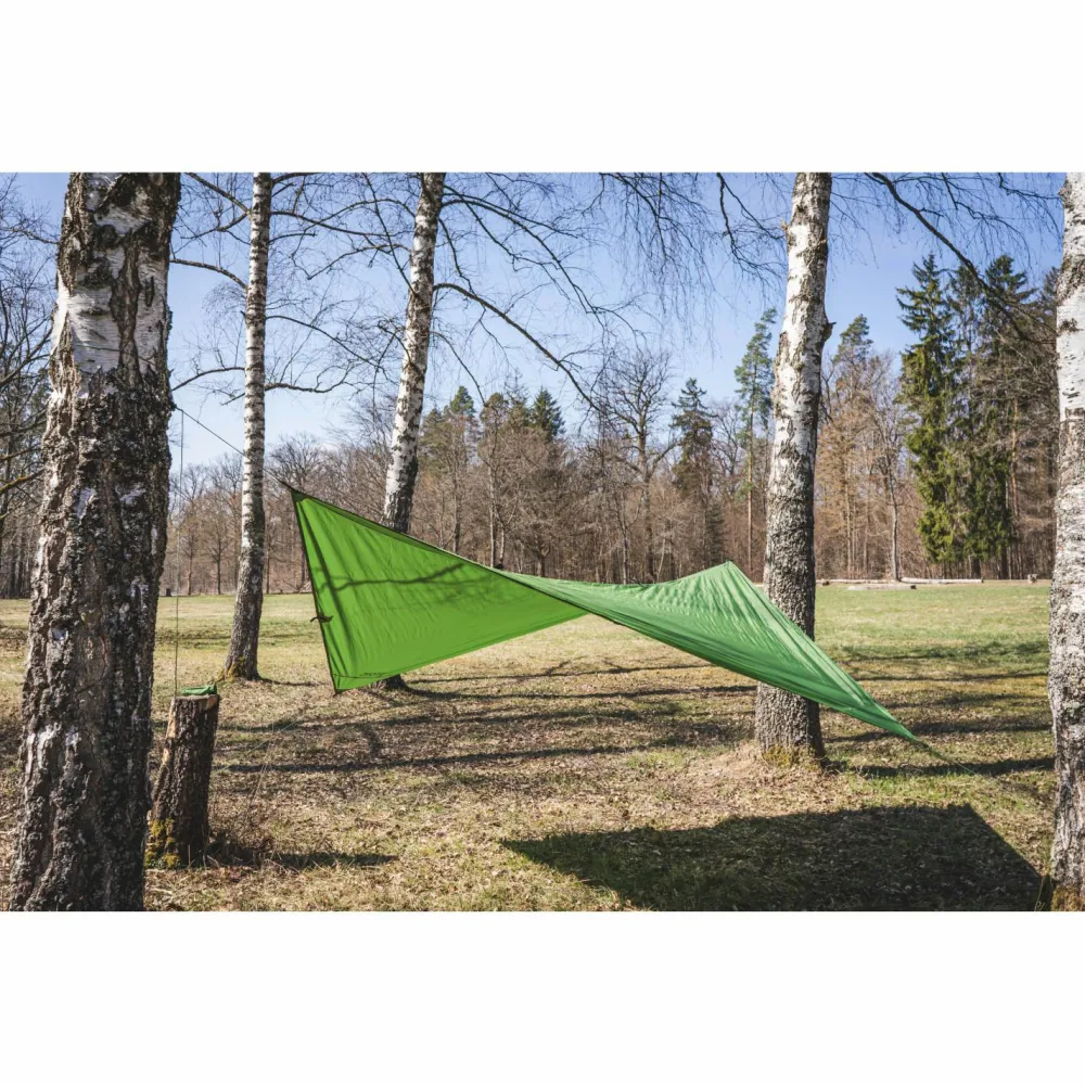 Das Kolari St. von Stoic ist ein praktisches Tarp für den Urlaub, die Reise oder die Trekkingtour. Es ist in zwei verschiedenen Größen erhältlich (245 x 245 cm / 300 x 296 cm), sorgt für viel Schatten und schützt vor Regen. Mit den Abspannleinen und Heringen ist es schnell an Bäumen oder Ähnlichem befestigt. Da auch im Zentrum zwei Schlaufen zur Befestigung vorhanden sind, kann es wie ein Dach aufgespannt werden und fungiert somit bei der Treckingtour als leichter und kompakter Zeltersatz. Aber auch auf dem Campingplatz, als Vordach, macht dieses Tarp eine gute Figur.