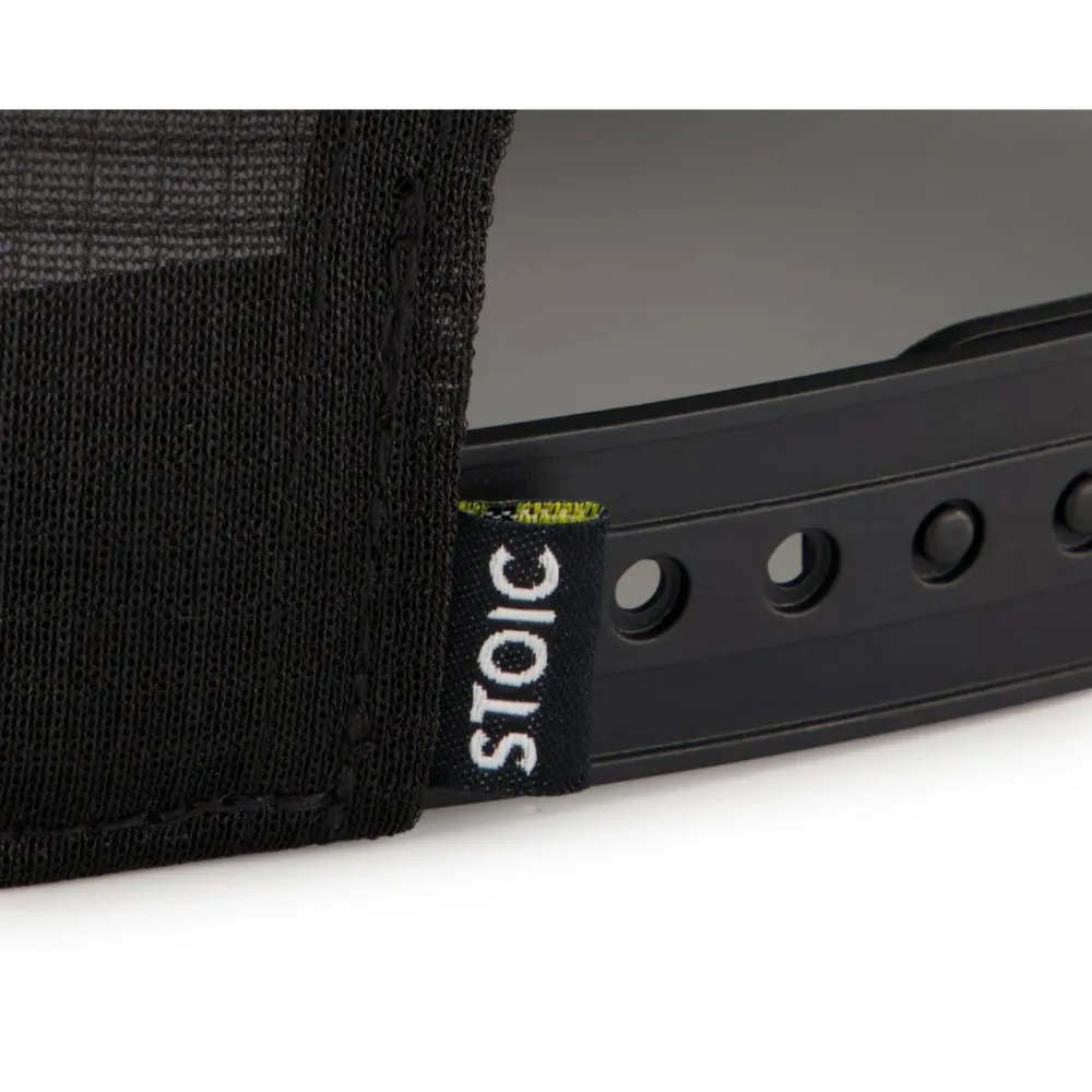 Die Logo Trucker Cap von Stoic sieht lässig aus und trägt dich sehr bequem. Dies liegt an dem Meshgewebe am Hinterkopf. Es sorgt auch an heißen Tagen für eine gute Belüftung. Die Cap lässt sich in der Weite anpassen und ist mit einem dezenten Logoprint ausgestattet.