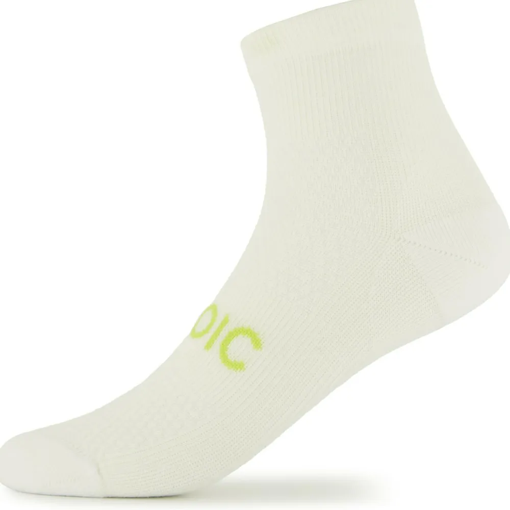 Die Stoic Merino Running Quarter+ light socks unterstützen Deine Füße beim Lauftraining. Zehen und Fersen sind extra gepolstert, wodurch Druckstellen und Blasenbildung vorgebeugt wird. Zudem sorgen Belüftungszonen am Mittelfuß für eine gesteigerte Atmungsaktivität. Durch den relativ hohen Wollanteil besitzen die Socken nicht nur ein natürliches Tragegefühl, sie hemmen auch die Bildung von unangenehmem Gerüchen, weshalb sie auch nach dem Lauf noch ziemlich frisch riechen und einfach ausgelüftet werden können. Der Schaft liegt eng an, reicht bis über den Knöchel und sorgt für einen festen Sitz. Mit diesen Socken bist Du für das Lauftraining ideal ausgestattet!