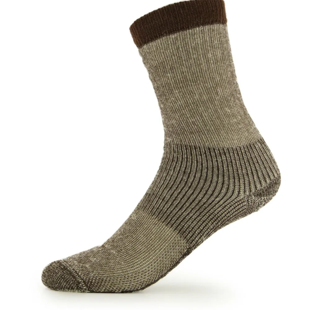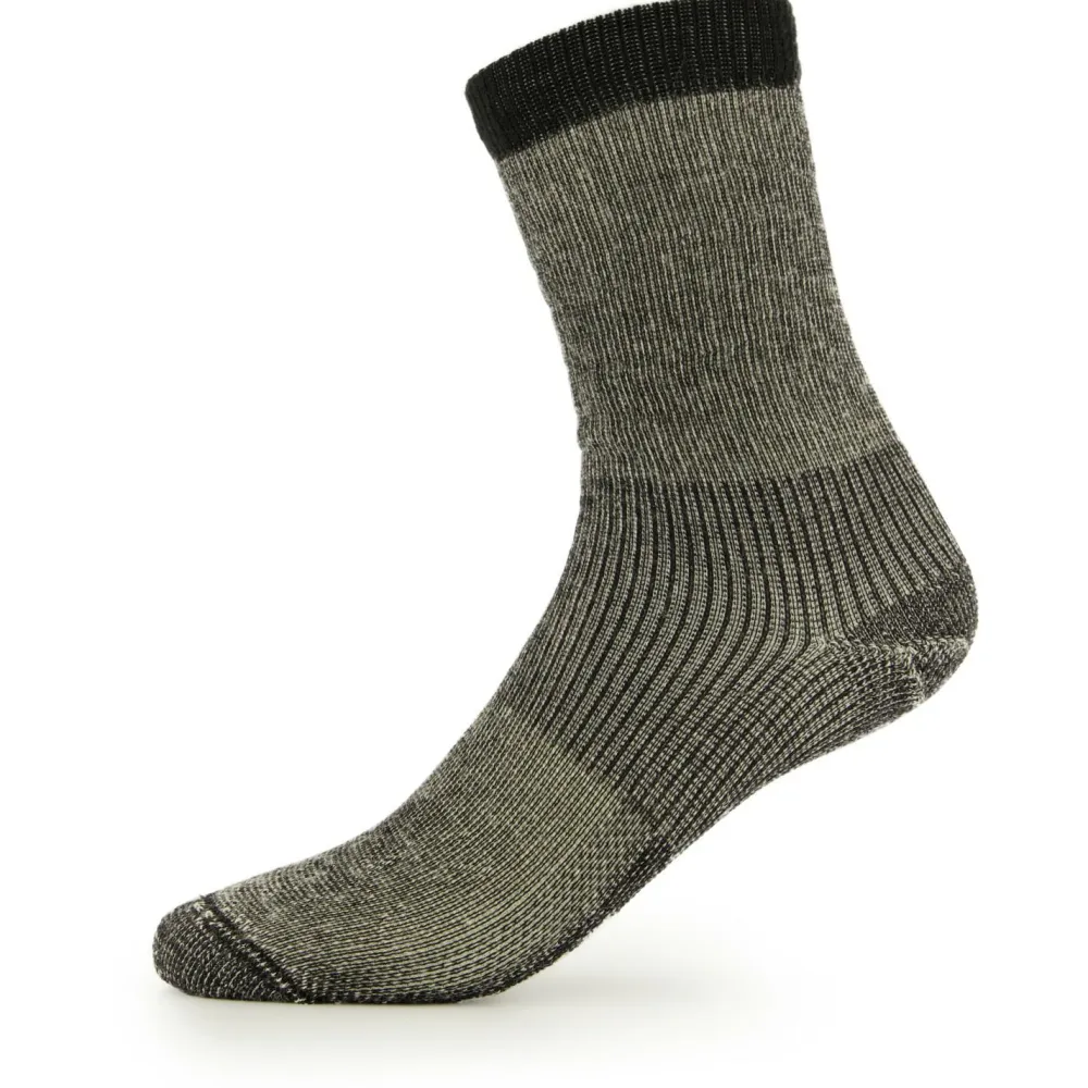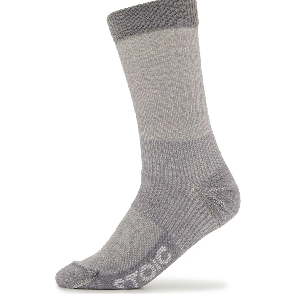 Mit den Stoic Merino Wool Cushion Heavy Socks erhältst Du ein Paar hochwertiger Wandersocken mit guter Dämpfung. Denn das Gewebe ist ziemlich dick, und zudem an den Zehen und Fersen zusätzlich gepolstert. Hierdurch profitieren Deine Füße auch bei langen Touren von bestmöglicher Dämpfung. Durch den hohen Wollanteil im Gewebe entsteht ein ausgeglichenes Mikroklima im Fußbereich und die Bildung unangenehmer Gerüche wird deutlich reduziert. Für noch mehr Komfort sorgt das gerippte Gewebe im Mittelfuß. Dieses garantiert einen perfekten Sitz und reduziert die Reibung im Schuh.