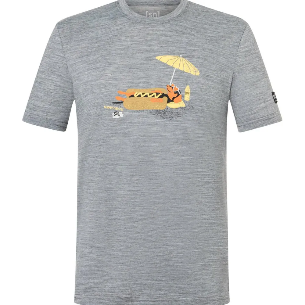 Mit dem Hot Dog Tee von super.natural bist Du lässig und komfortabel unterwegs! Das leichte Merinoshirt punktet mit atmungsaktiver sowie geruchshemmender Funktion – perfekt für entspannte Tage oder spontane Aktivitäten. Der witzige Frontprint bringt Extra-Stil ins Outfit und macht Dein Shirt zum Hingucker. Die Kombination aus Merinowolle und Kunstfaser sorgt für spürbare Bewegungsfreiheit und ein angenehmes Tragegefühl.