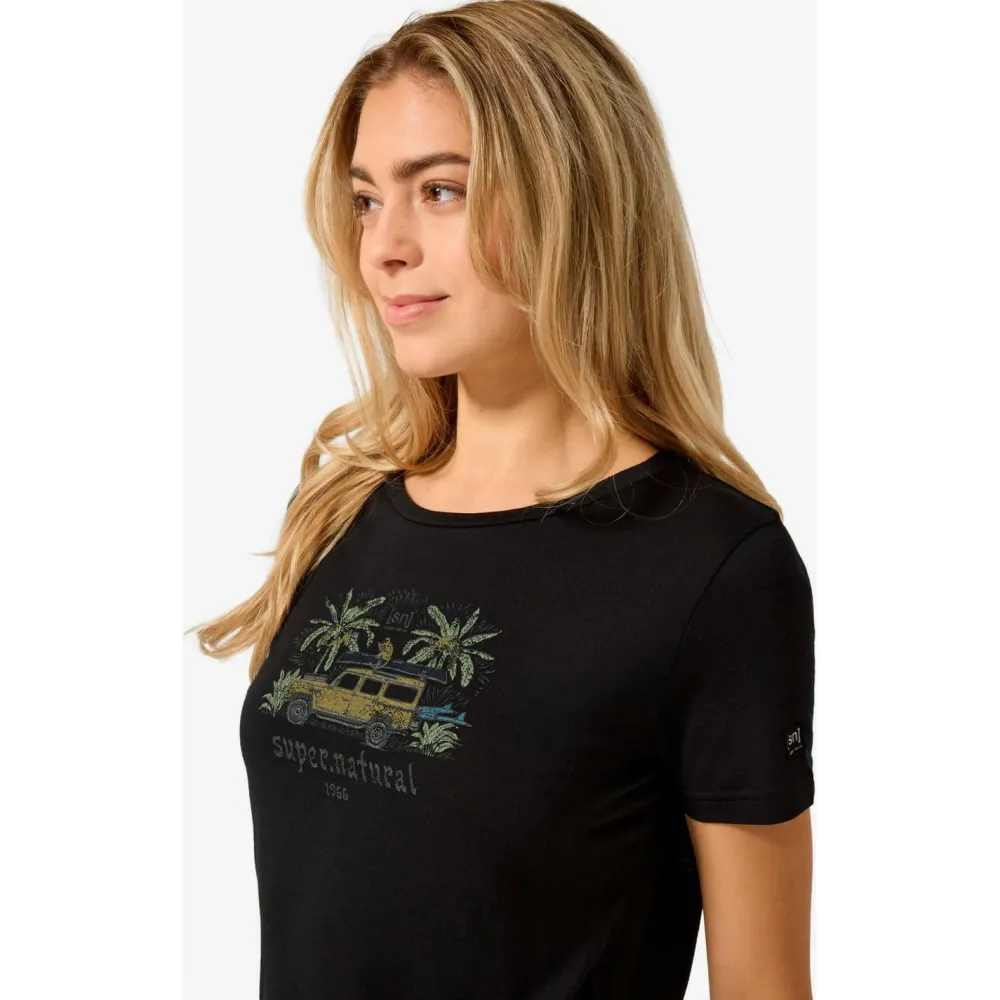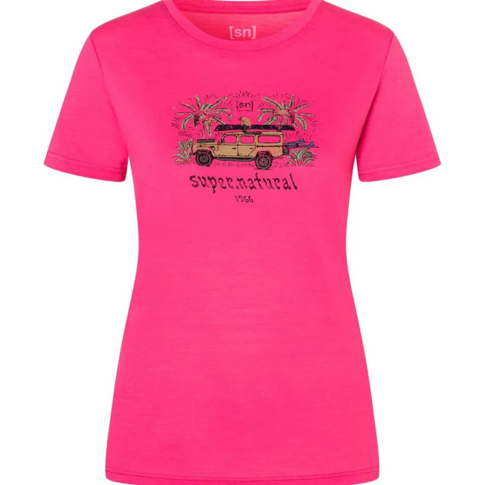 Das Women’s Tropicar Tee von super.natural kombiniert atmungsaktive Merinowolle mit angenehmem Stretch und sorgt damit für unvergleichlichen Komfort – ob Du unterwegs oder Daheim bist. Der coole Frontprint verleiht dem Kurzarmshirt eine frische, lässige Optik. Die perfekte Wahl für entspannte Outfits, in denen Du Dich überall wohlfühlst! Das Label super.natural steht für funktionale und komfortable Mode im puristischen Design und macht Dir damit den Alltag besonders stylisch und bequem.