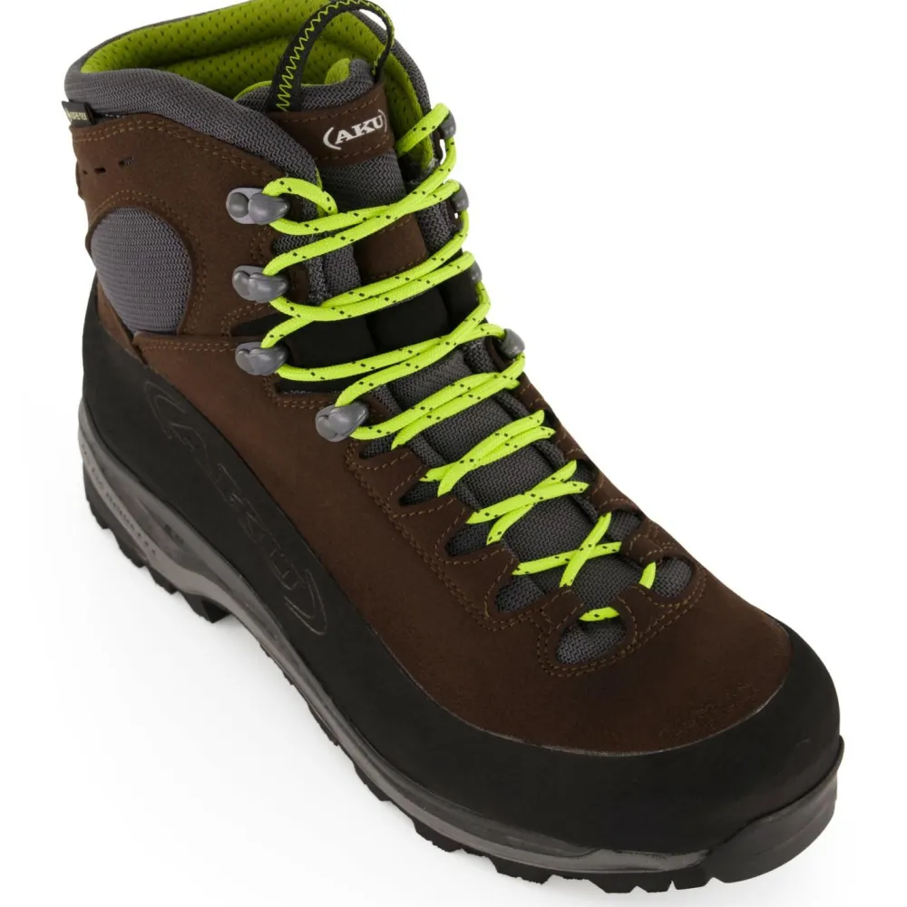 Das italienische Design der Superalp V-Light GTX vereint Stil mit Funktionalität: Der knöchelhohe Schnitt gibt Dir extra Stabilität auf unebenem Gelände, während der robuste Geröllschutzrand Deine Schuhe vor Abnutzung bewahrt. Die individuell anpassbare Schnürung sorgt dafür, dass Du auch bei langen Touren mit schwerem Gepäck immer festen Halt hast. Hergestellt in den renommierten Produktionsstätten von AKU in Italien stehen diese Bergschuhe für Qualität „Made in Europe“.
