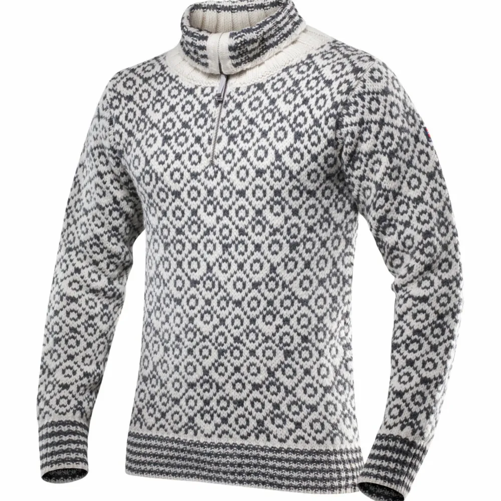 Der klassische Norweger-Pulli im neuen Design – der Svalbard Sweater Zip-Neck von Devold ist aus norwegischer Schurwolle gefertigt. Der Stoff ist aus zweifarbigem Jacquard gestrickt, welches schwerer ist als normale Wollstoffe und somit eine perfekte Isolation bietet. Ein umklappbarer Kragen schützt zuverlässig vor Wind und Kälte.