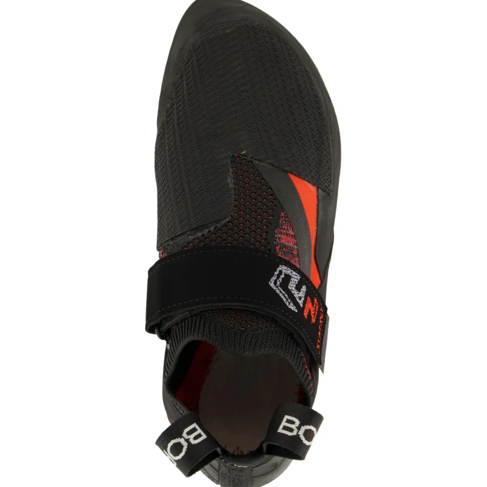 Der Synergy 2.0 von Boreal ist ein Kletterschuh, der ganz klar für ambitionierts Bouldern und Wettkampfklettern gemacht ist. Seine Konstruktion als Slipper mit zusätzlichem Klettverschluss sorgt für eine außergewöhnlich gute Passform und schnellen Einstieg – ideal, wenn es beim Projektieren mal schnell gehen muss. Die integrierte elastische Zunge passt sich dem Fuß an und sorgt für ein angenehmes Tragegefühl auch bei längeren Sessions. Besonders in steilem Gelände spielt der Schuh seine Stärken aus: Die Zenith Ultra Sohle bietet eine extrem hohe Reibung und ermöglicht präzises Antreten auf kleinsten Reibungstritten – ein echter Vorteil bei dynamischen Zügen und komplexen Bewegungsabläufen.