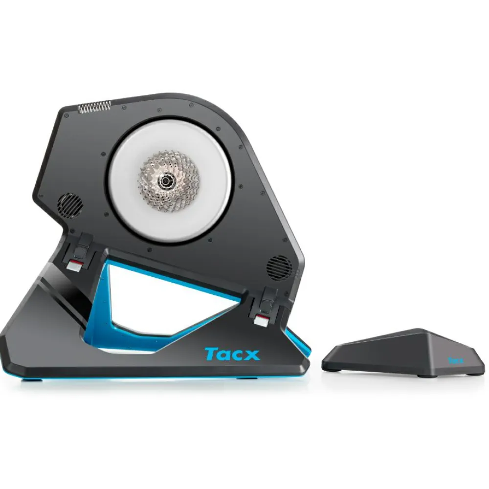 - NEO 2T Smart-Trainer, Vorderradstütze, Schnellspanner für Rennräder und Mountainbikes (5 mm), Anschlagsbuchsen zur Verwendung mit Steckachsen 142 x 12 mm und 148 x 12 mm, Monatsabonnement der Tacx Premium-Software, Shimano / Sram 11-Fach Freilaufkörper