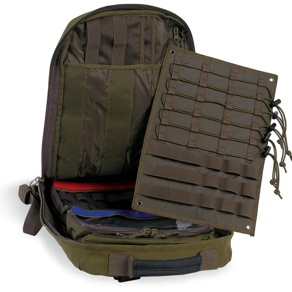 In seinem Innenraum sorgen separate Taschen, darunter eine Scherentasche, für eine ordentliche Übersicht. Farblich markierte Taschen helfen beim schnellen Zurechtfinden. So hat man den richtigen Gegenstand schnell zur Hand. Der Daypack kann dank abnehmbarer Schulterträger auch als Tasche getragen werden. Das Molle-System dient der individuellen Erweiterung des Rucksackes. Für das Survival Training und den Einsatz ein unverzichtbarer Partner!