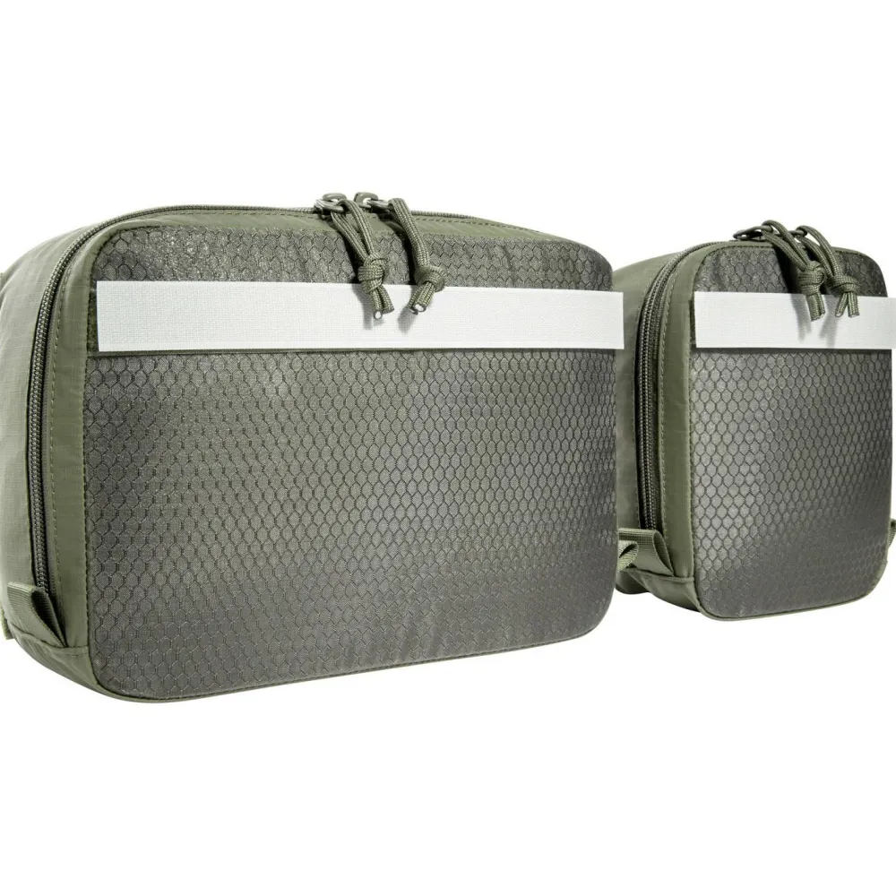 Tasmanian Tiger sind absolute Spezialisten bei Einsatz-Ausrüstung, geschickten Details und kompromissloser Praxistauglichkeit. Davon zeugt auch das TT Multipurpose Pouch Set VL! Die Taschen kommen jeweils großer Klettfläche auf der Rückseite, wodurch sie in viele der modularen Rucksäcke von Tasmanian Tiger passen, und sich dort befestigen lassen. Als Material kommt sehr robustes, 210 Denier starkes Nylon zum Einsatz, was die Taschen sehr abrieb- und reißfest, und ergo langlebig macht. Außerdem haben die Taschen Befestigungsschlaufen, Daisy Chains an den Innenseiten, und transparente Deckel, sodass der Inhalt auch von außen sichtbar ist.