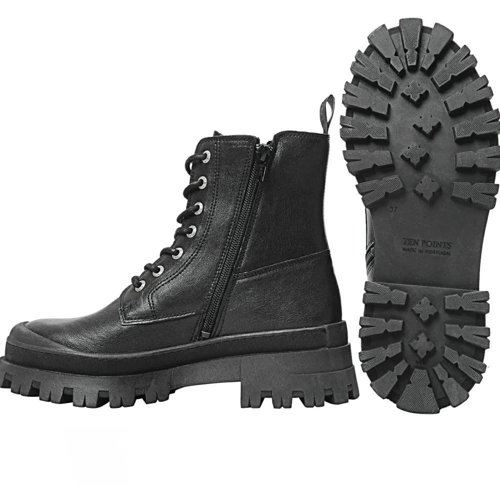 Für Wärme und Langlebigkeit sorgen bei diesen Winterschuhen hochwertiges Fleece und robustes Leder. Fleece hält Deine Füße auch an frostigen Tagen angenehm warm, während Leder sich Deinem Fuß anpasst und für ein atmungsaktives Klima sorgt. Die skandinavische Marke Ten Points steht für Qualität und durchdachtes Design – damit hast Du einen Schuh, der nicht nur komfortabel ist, sondern Dir lange Freude bereitet.
