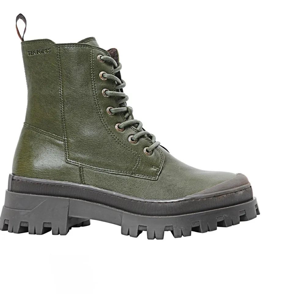 Mit den Women’s Jenny Lace Boots Tanned Leather von Ten Points bist Du bestens gerüstet für lange Tage im Winter. Die clevere Verbindung aus Schnürung und seitlichem Reißverschluss macht das An- und Ausziehen zum Kinderspiel. Dank der Anziehschlaufen geht es morgens besonders flott, während das Latex-Fußbett Deine Schritte sanft abfedert. Die Möglichkeit, die Einlegesohle zu wechseln oder eigene Einlagen zu nutzen, bringt Dir zusätzliche Flexibilität im Alltag.
