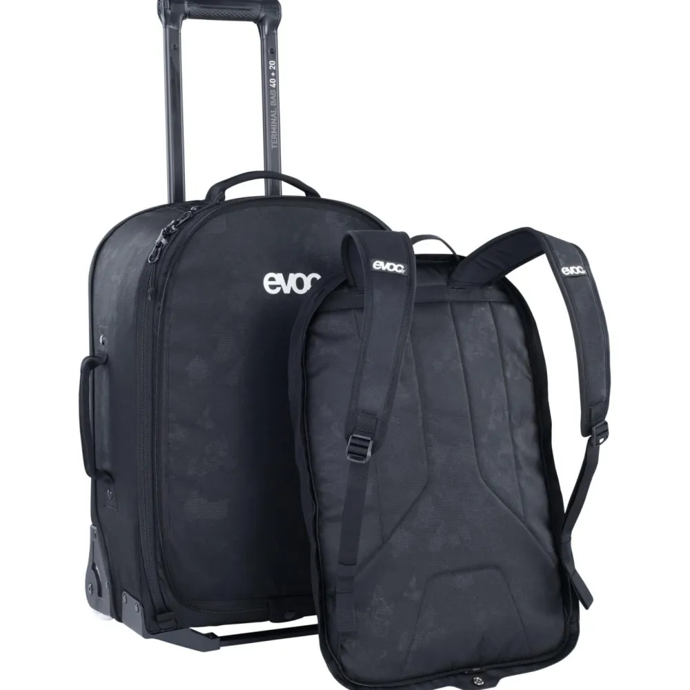 Der Terminal Bag 40+20 von Evoc kombiniert die Funktionalität eines Rollkoffers mit der Flexibilität eines abnehmbaren Tagesrucksacks. Mit 60 Litern Volumen bietet er genügend Platz für Kleidung, Technik und persönliche Essentials, bleibt dank seiner Maße aber handgepäcktauglich (ohne Daypack). Der gepolsterte Laptopbereich schützt Dein Gerät zuverlässig, während das separate Fach im Tagesrucksack wichtige Dinge griffbereit hält und für mehr Übersicht sorgt.