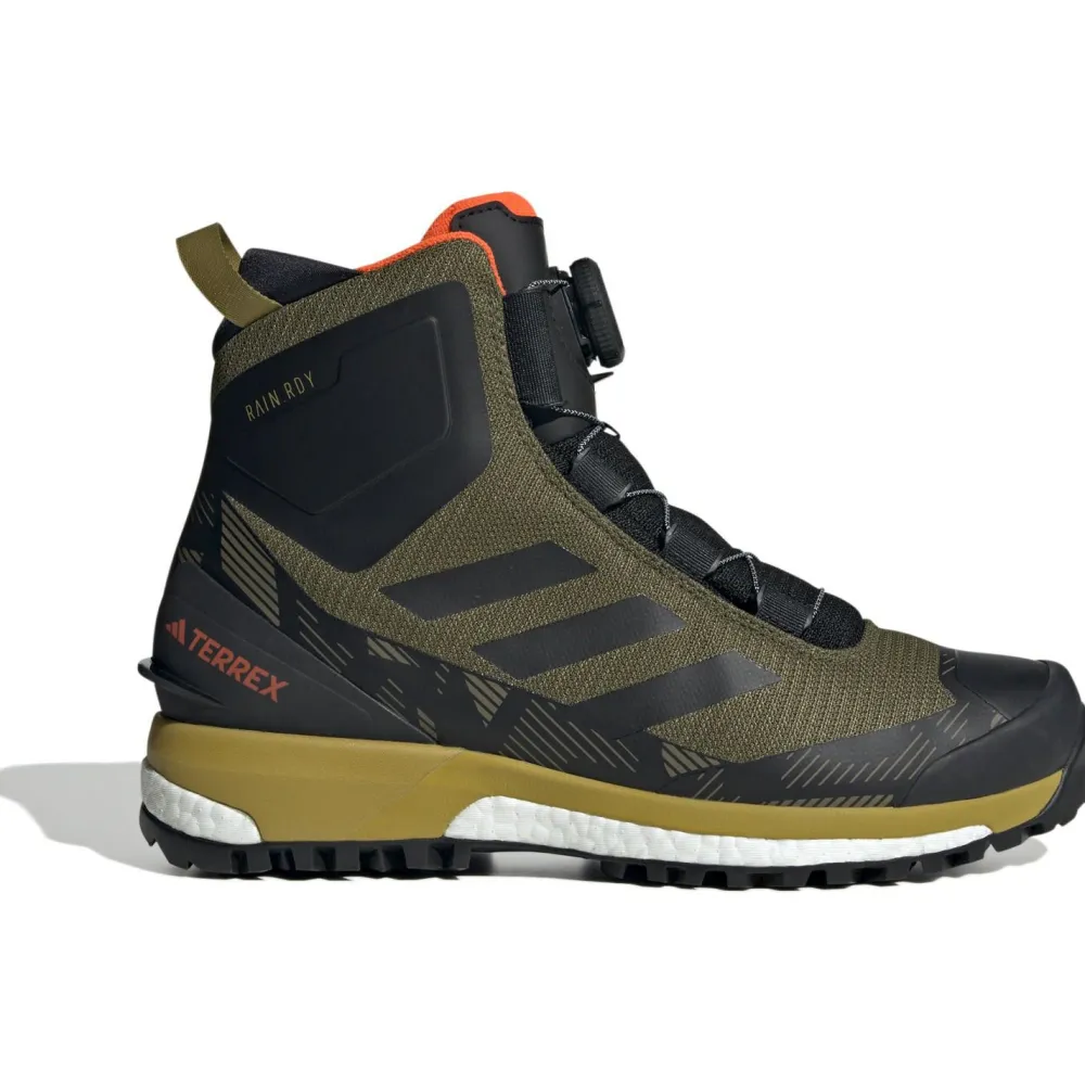 Bieten Wetterschutz und Stabilität, die Winterschuhe Terrex Conrax Boa Rain Ready von adidas Terrex! Dank RAIN.RDY sind die Schuhe wasserdicht und gleichzeitig atmungsaktiv. Der Schuh ist mit Primaloft gefüttert, um Deine Füße zuverlässig warmzuhalten. COLD.RDY reflektiert die Wärme vorteilhaft, sodass nichts auskühlt.