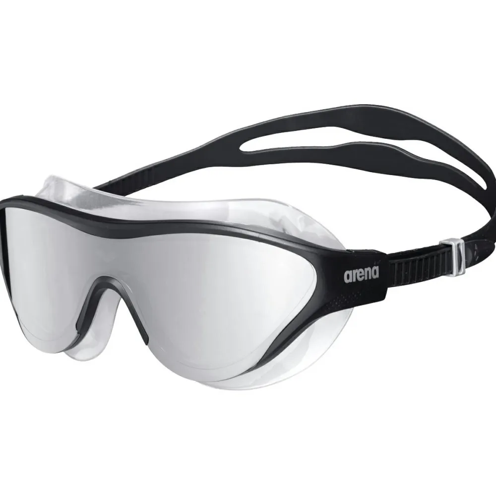 Sportliche Schwimmer und Triathleten genießen mit der The One Mask Mirror Schwimmbrille von Arena ein besonders breites Sichtfeld und besten Tragekomfort. Das Polycarbonat Brillenglas ist mit einer effizienten Antifog-Beschichtung ausgestattet und garantiert dadurch jederzeit freie Sicht. Mit ihrer Silikondichtung und dem einstellbaren Kopfband passt sich die sportlich Schwimmmaske optimal an. Ein selbstjustierender Nasensteg ergänzt die schicke Brille mit dem verspiegelten Glas.