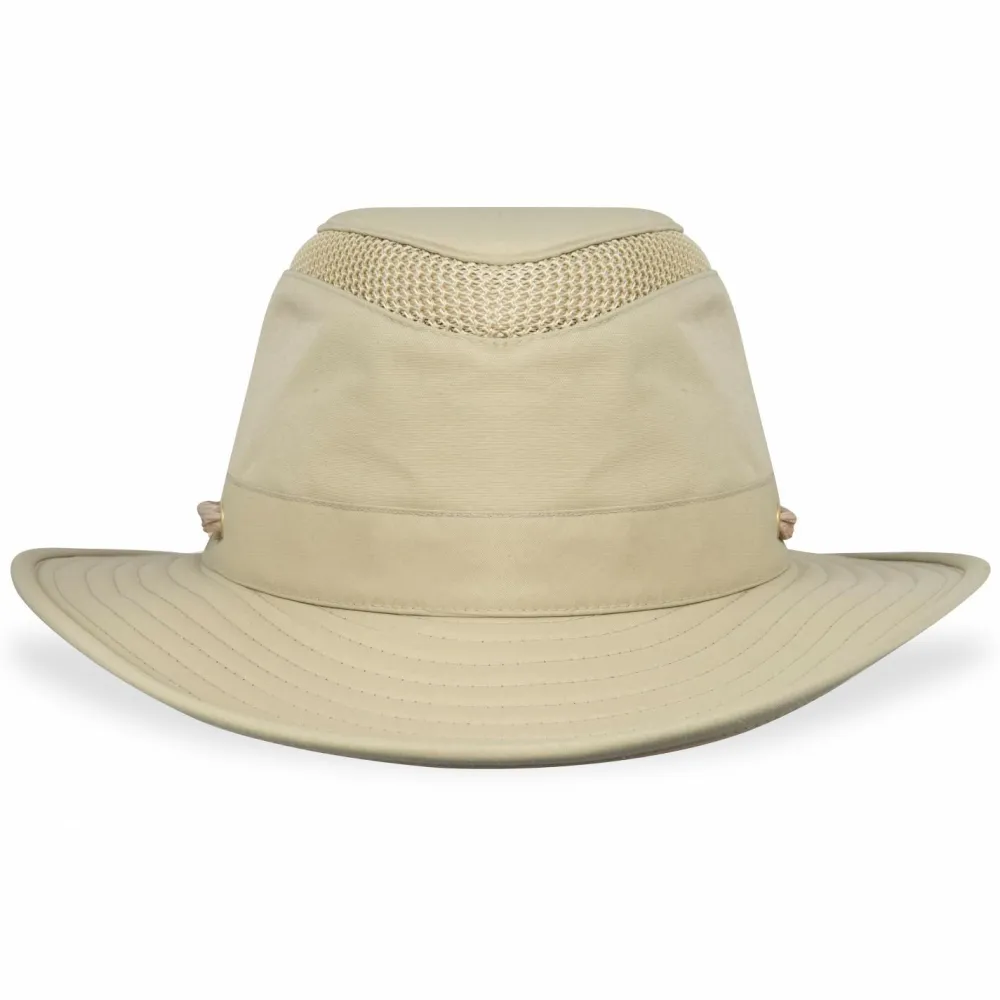 Luftiger Sommerhut mit wasserabweisenden Eigenschaften – der LTM6 Airflow Hat von Tilley schützt vor Sonne und Regen gleichermaßen. Dank des hohen Litschutzfaktor 50+ kommen keine schädlichen UV-Strahlen durch das Gewebe. Durch eine DWR-Behandlung ist der Hut dauerhaft stark wasserabweisend. Durch den Kordelzug am Kinn kann er sicher befestigt werden und fliegt auch bei starkem Wind nicht davon.