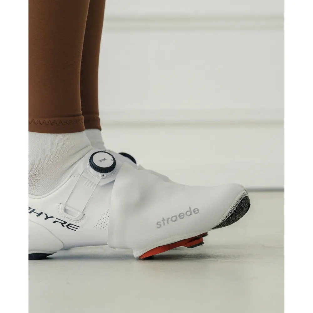 Die Toe Covers von straede bestehen aus isolierendem Neopren und schützen Deine Zehen zuverlässig vor Wind, Regen und Kälte. Sie lassen sich leicht über die Radschuhe ziehen, sitzen sicher dank rutschfester Gummierung und passen zu gängigen Road- und Gravel-Cleats. Ideal für wechselhaftes Wetter und lange Touren – auf Asphalt oder Schotter.