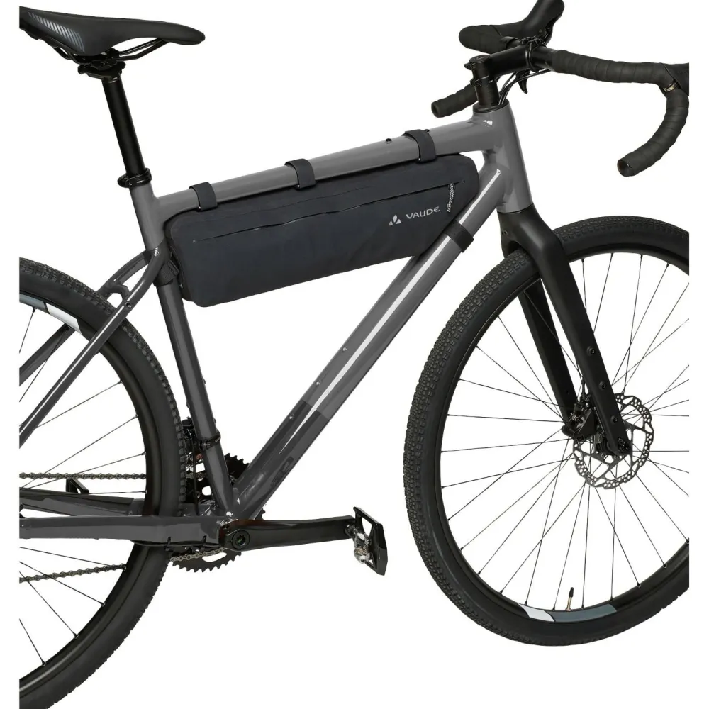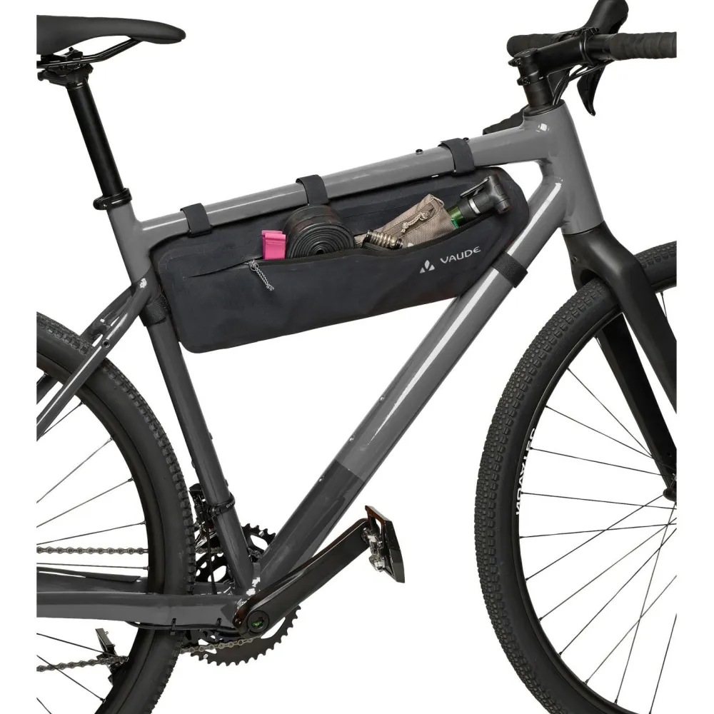 Die Trailframe L Fahrradtasche von Vaude kannst Du einfach und schnell mit Klettverschlüssen am Rahmen Deines Fahrrads befestigen. Sie eignet sich für Rahmenumfänge von 9 bis 17 cm. Dank ihres wasserdichten Materials und der wasserdichten Reißverschlüsse bleiben Deine Habseligkeiten auch bei strömendem Regen sicher und trocken.