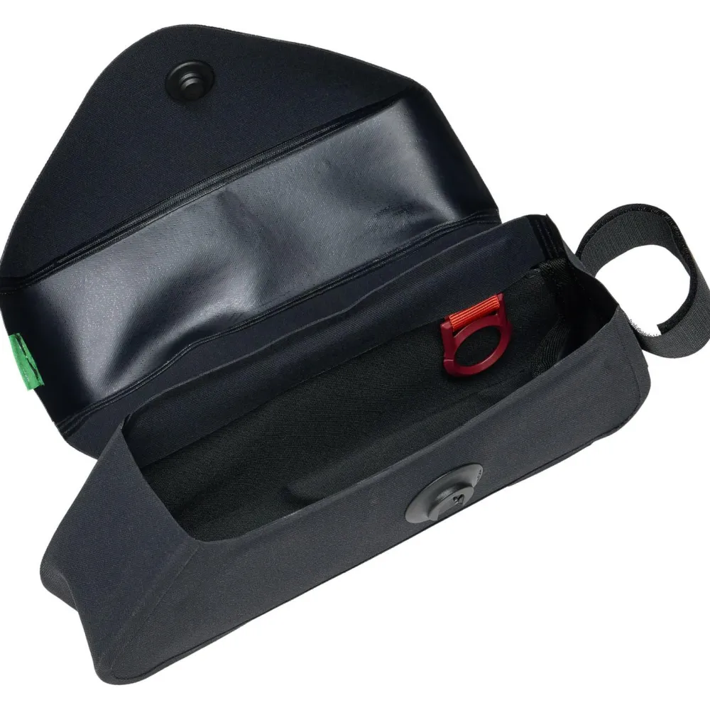 In der Trailtop Tube Fahrradtasche von Vaude kannst Du Werkzeug, Wertsachen und kleine Gegenstände sicher und schnell erreichbar mit auf Deine Fahrradtouren nehmen. Das Hauptmaterial ist komplett wasserdicht und die Nähte wurden verschweißt – so sind Deine Habseligkeiten auch im strömenden Regen sicher und geschützt. Der Fidlock-Magnetverschluss ist schnell und einfach zu bedienen.