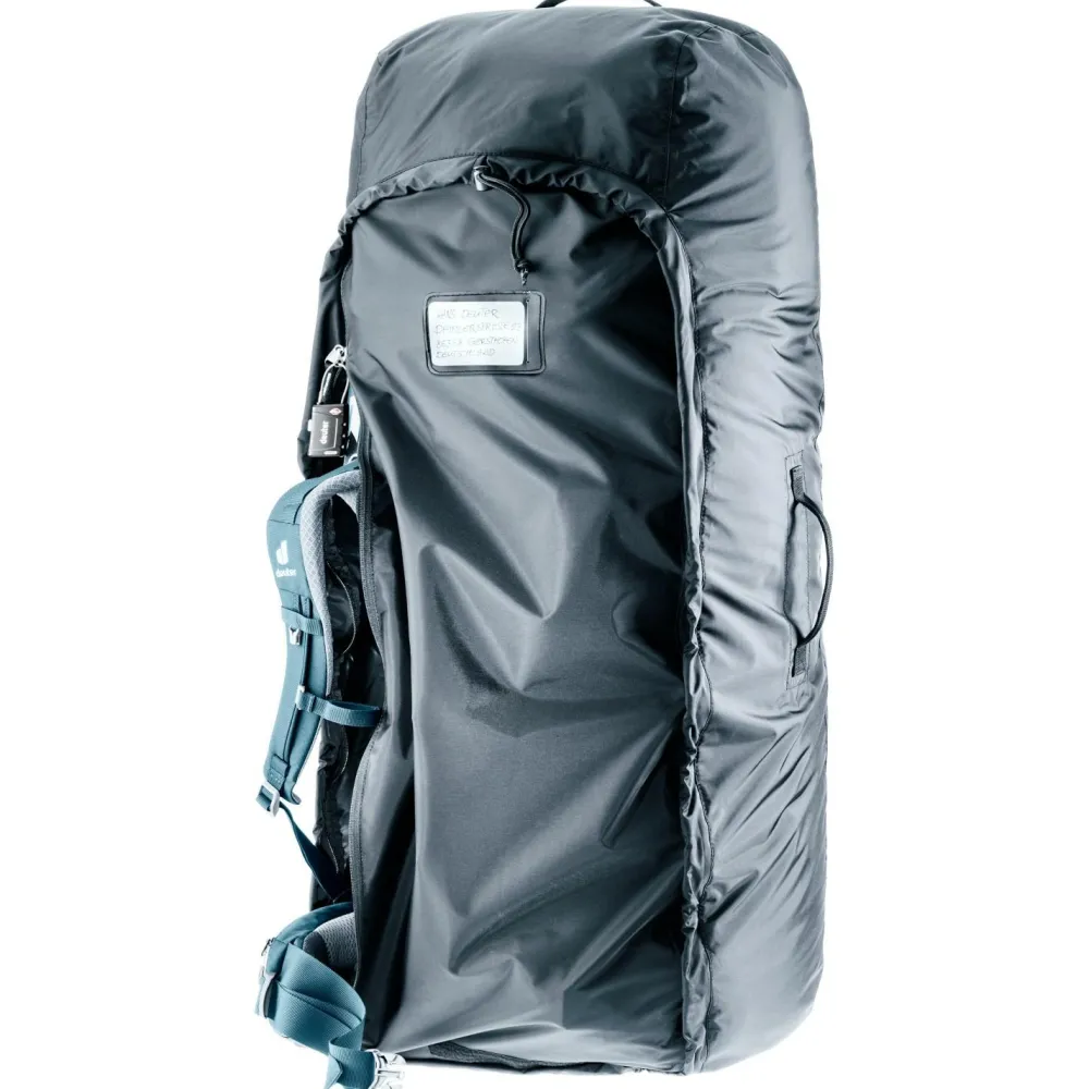 Die Transport Cover von Deuter ist eine leichte Schutzhülle, die Rucksäcke dank robustem Material und getapten Nähten vor Beschädigungen und Regen schützt. Neben dem robusten Material überzeugt auch die Ausstattung, zu der Tragegriffe, eine integrierte Packtasche und ein Fixpunkt für ein Reißverschlussschloss gehören.