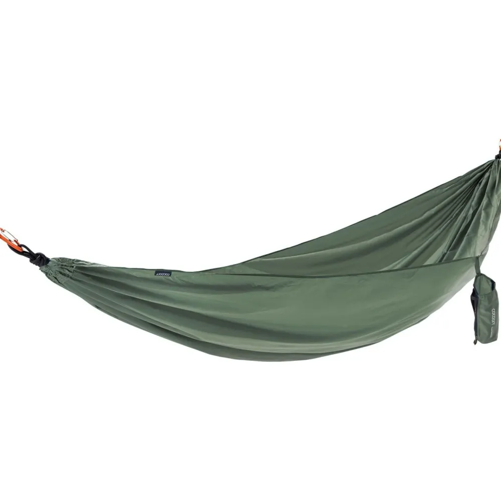 Allein gemütlich abhängen und genießen: Die Travel Hammock Single Hängematte von Cocoon überzeugt mit durchdachten Details und großzügigen Dimensionen für einen rundum erholsamen Liegekomfort. Weiches und gleichzeitig starkes 70 Denier Diamond Ripstop Nylon macht das gute Stück bequem und robust. Superstarke Vierfachnähte halten was aus und der praktische Packsack sorgt dafür, dass sich die Hängematte im Gepäck schön klein macht. Zwei Aluminium-Karabiner sind im Lieferumfang enthalten.