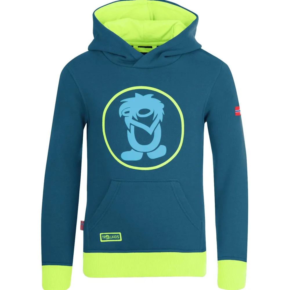 Hält Dich zuverlässig warm, der Hoodie Kid’s Troll Sweater von Trollkids! Der Materialmix liefert einen angenehm weichen Tragekomfort und eine zuverlässige Isolation. Die Baumwolle liefert Robustheit und eine angenehmes Tragegefühl auf der Haut. Mit den Rippbündchen wird die Wärme gut im Hoodie gehalten. Wird es besonders unangenehm, setzt Du die warme Kapuze auf. Kleinigkeiten kannst Du in der großen Kängurutasche unterbringen. Optisch wird der Hoodie mit einem coolen Print auf der Brust aufgepeppt. Ein echter Hingucker für Freizeit und Alltag!