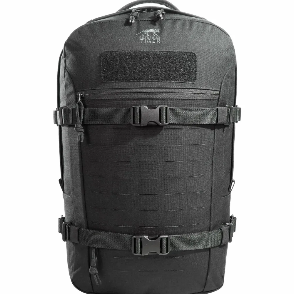 Er punktet mit geräumigem Innenfach, in dem Laptop, Ausrüstung und Verpflegung Platz finden. Erweitert wird die Kapazität mit verschließbaren Außentaschen. Bei Bedarf lassen sich weitere Ergänzungen mit Hilfe des Molle-Systems anbringen. Kompressionsriemen verringern das Volumen, sollte man den Rucksack nicht ganz voll packen. Mit den gepolsterten Schulterträgern lässt er sich bequem transportieren. Dank Cordura-Verstärkungen ist der Rucksack besonders robust. Ein toller Partner für Natur und Alltag!