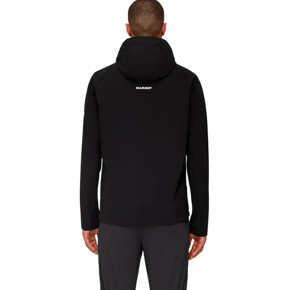 Die Ultimate Comfort Softshell Hooded Jacket von Mammut zaubert Dir schon beim Herunternehmen vom Kleiderhaken ein Lächeln ins Gesicht, weil man sich auf diese Jacke einfach freuen muss. Ihre hochwertigen Materialien halten Regenschauer und Wind davon ab, sich einen Weg ins Innere der Jacke bahnen zu wollen. Elastische Fasern sorgen dafür, dass Du Deine volle Bewegungsfreiheit ausnutzen kannst. Wenn es draußen unangenehm kalt wird, kann kurzerhand die Kapuze übergezogen werden und es wird warm um die Ohren. Die Kapuze lässt sich zudem mit nur einem Handgriff über einen Kordelzug verstellen.