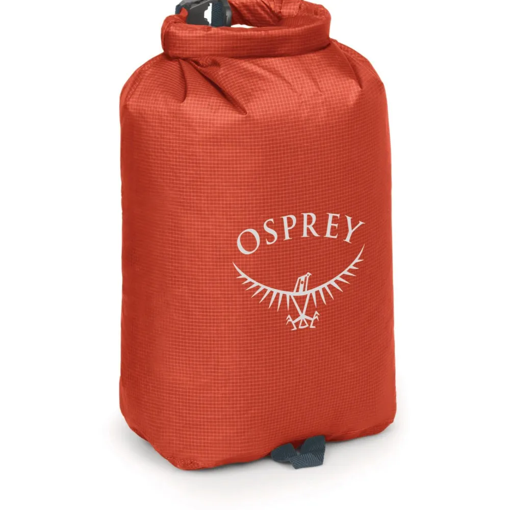 Der sechs Liter große Ultralight Dry Sack 6 Packsack von Osprey hilft beim Wandern und auf Reisen, um wichtige Ausrüstungsgegenstände sicher und geschützt zu verstauen. Mit wasserdichtem Rollverschluss und versiegelten Nähten widersteht das ultraleichte Gewebe Wasser und Schmutz nach IPX5 Norm.