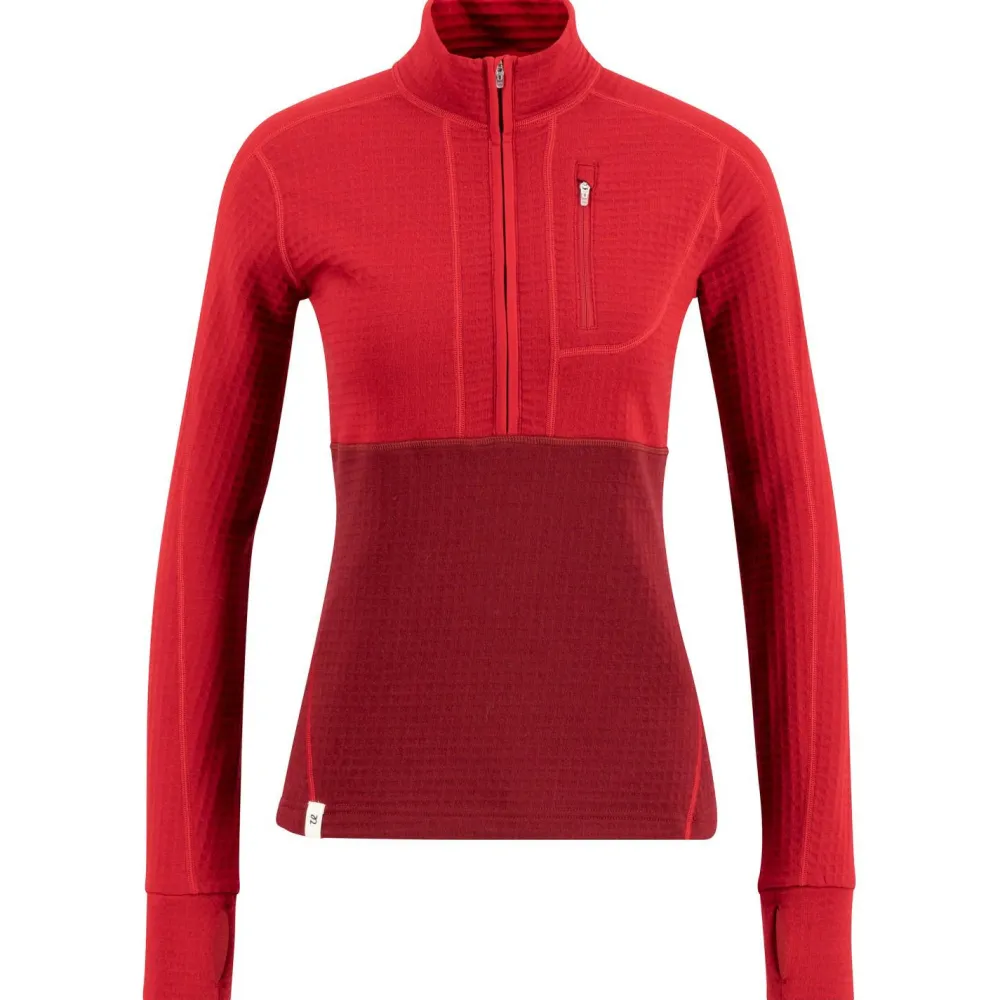 Mit dem Ulvang Women’s Peak Field Half Zip Midlayer bist Du bestens gerüstet für Deine nächste Bergtour oder Skitour. Der halblange Reißverschluss macht das An- und Ausziehen zum Kinderspiel, selbst wenn das Wetter plötzlich umschlägt. In der praktischen Brusttasche mit Reißverschluss hast Du kleine Dinge wie Deinen Skipass immer schnell zur Hand. Und dank Kordelzug am Saum sowie den Daumenschlaufen bleibt alles dort, wo es hingehört – kein Verrutschen, kein Frieren an den Händen.