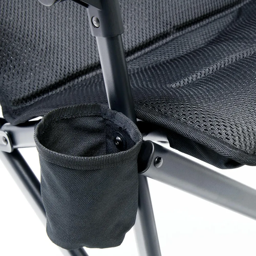Der robuste Stahlrahmen trägt bis zu 200 kg und bietet Dir verlässliche Stabilität. Zusätzlich hast Du mit der integrierten Becherhalterung Dein Getränk immer griffbereit. So wird jede Pause ein Genuss.