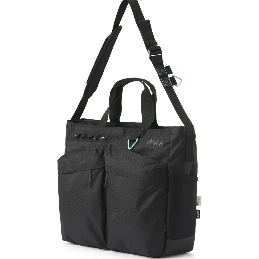In der geräumigen Utility Tote Bag von AEVOR bekommst Du alles unter, was Du für Deinen Arbeitsalltag oder Deine Freizeit brauchst. Dokumente, Laptop, Regenjacke und Verpflegung finden ihren Platz. Ein verstellbarer, gepolsterter Schultergurt sorgt für mehr Tragekomfort und ein Aluminium-D-Ring gibt Dir bequemen Zugriff auf Deine Schlüssel. Ausgestattet mit einer PFC-freier Imprägnierung wird dafür gesorgt, dass Deine verstauten Sachen bei leichten Regenschauern trocken bleiben. Zudem zeichnet sich die Utility Tote Bag vor allem durch ihre Robustheit aus, die durch das Außenmaterial aus recyceltem Nylon gewährleistet wird.