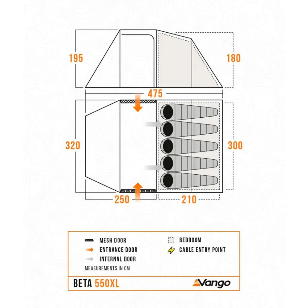 Das Beta 550XL ist ideal für Campingtrips mit dem Auto und wird auch Camper ansprechen, die ein geräumiges und komfortables Wochenendzelt suchen. Die Tunnelzeltkonstruktion ermöglicht einen schnellen und einfachen Aufbau, ohne Kompromisse beim Innenvolumen einzugehen. Die PowerFlex Glasfasermasten sind starke und leicht, und geben dem Zelt so eine zuverlässig-standfeste Struktur. Das Innenzelt aus strapazierfähigem Polyester und atmungsaktivem Mesh sorgt für eine gute Belüftung und reduziert die Kondensation.