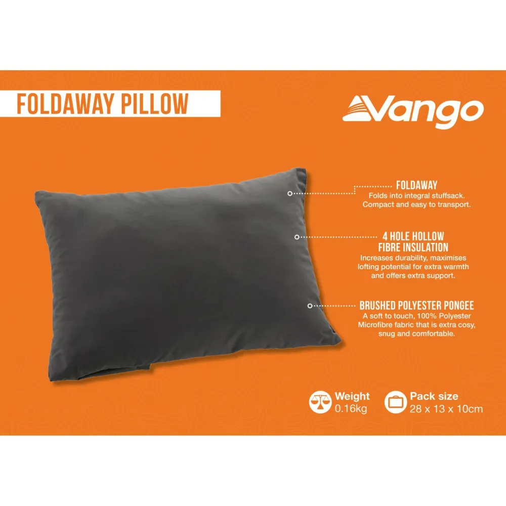 Entspannt schläfst Du auf dem Kissen Foldaway Pillow von Vango! Es kommt mit einer isolierenden Kunstfaserfüllung daher, die für ein weiches Liegegefühl und angenehme Wärme sorgt. Es lässt sich im integrierten Packsack verstauen, damit es auf Reisen nur wenig Platz wegnimmt. Ideal für Camper!