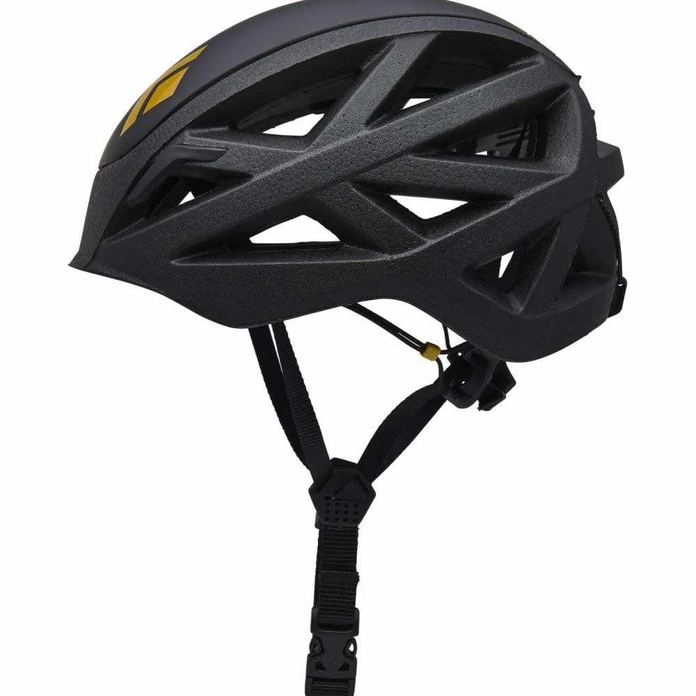 Der Vapor Helmet von Black Diamond ist ein ultraleichter Kletterhelm mit sportlichem, an der natürlichen Kopfform orientiertem Design. Er zeichnet sich dank zahlreicher, großer Belüftungsöffnungen sowie der minimalistischen Konstruktion durch einen hohen Tragekomfort aus und eignet sich daher besonders gut für lange Routen wie beim Mehrseillängen- oder Alpinklettern.