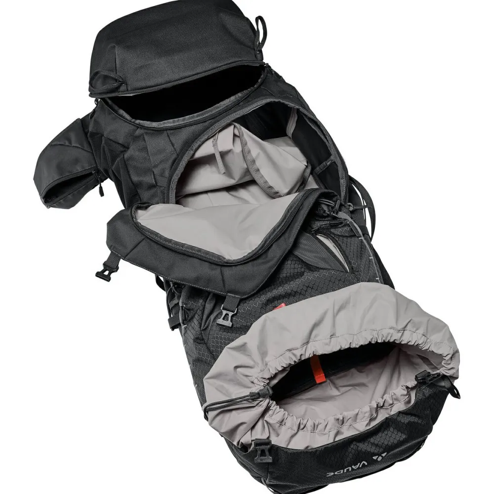 Das Material punktet mit Robustheit und Wetterschutz. Auf das geräumige Hauptfach kannst Du über die Front und den Deckel zugreifen. Darin hat Dein Gepäck für mehrere Tage optimal Platz. Der Stauraum wird mit weiteren Stretchfächern und Deckelfächern erweitert. Die Deckeltasche kannst Du abnehmen und als separate Tasche verwenden. Kompressionsriemen sorgen für Stabilität. Das Tragesystem ist rückenschonend und komfortabel. Die Rückenlänge kannst Du individuell einstellen. Dank Comfort Space wird der untere Bereich des Rückens optimal entlastet. Ideal für Mehrtagestouren!